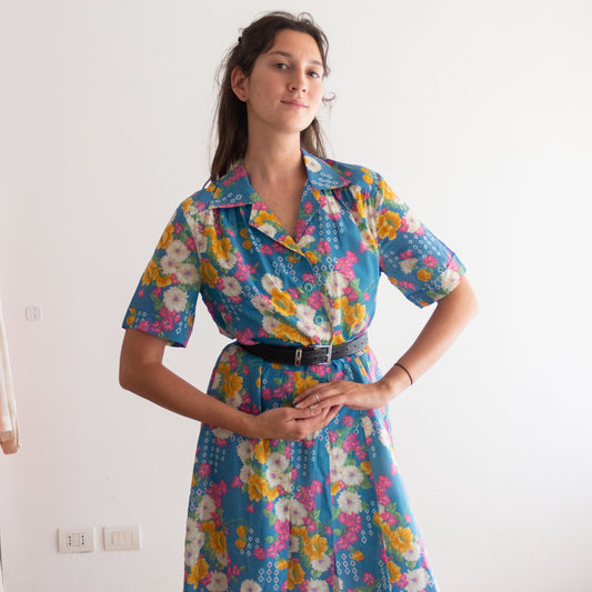 Abito floreale azzurro 46