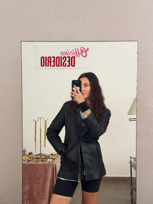Giacca in pelle nera 42