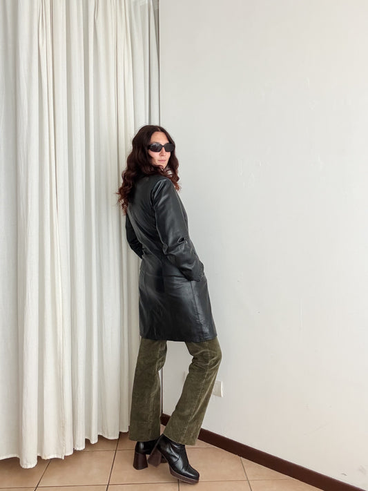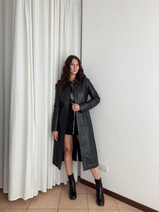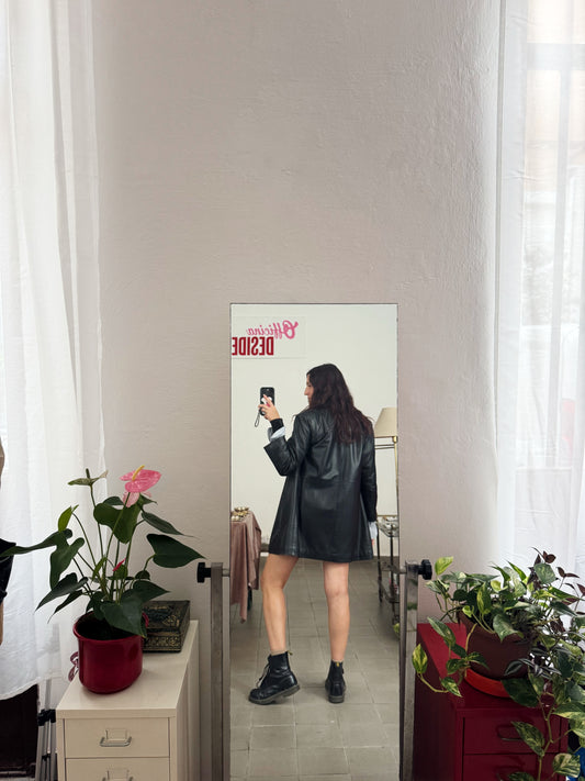 Giacca in pelle lunga nera 42