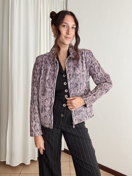 Giacca in pelle rosa pitonata M