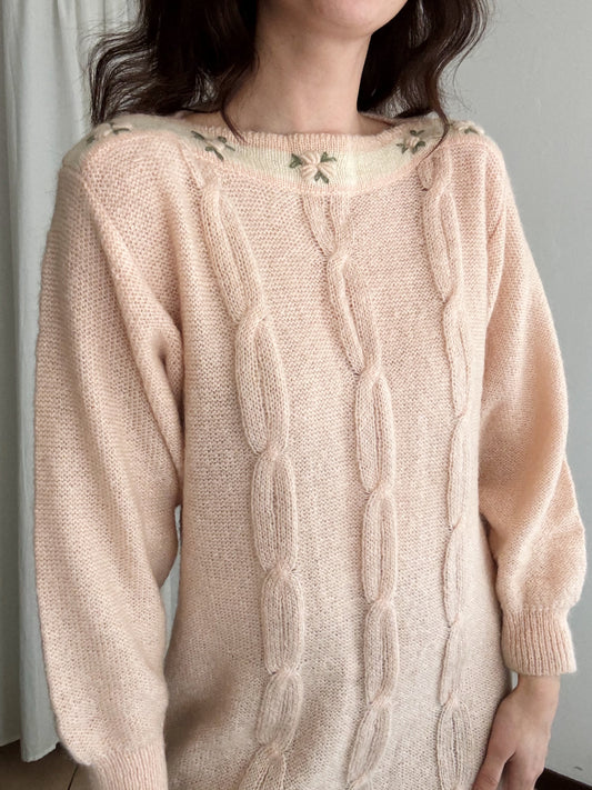 Maxi maglione rosa con ricami XL
