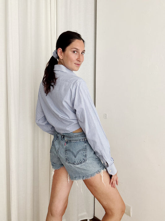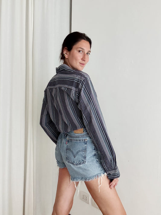 Crop + scrunchie righe blu
