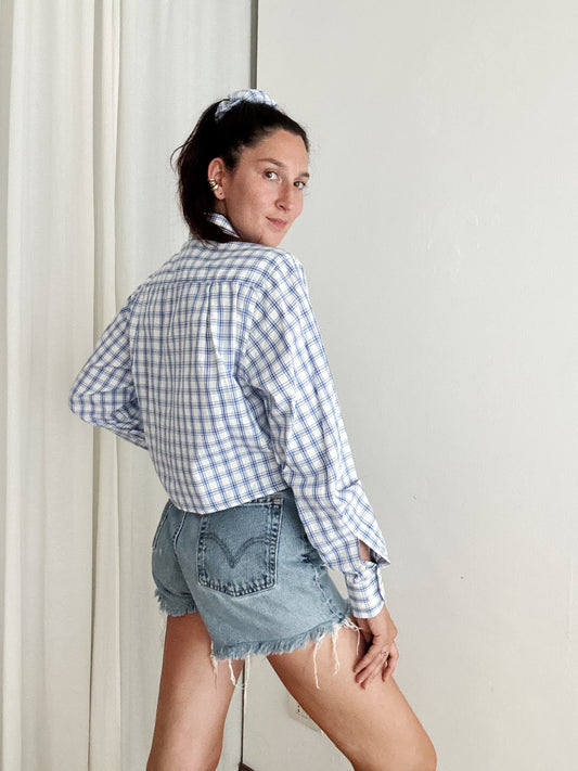 Crop + scrunchie a quadri blu