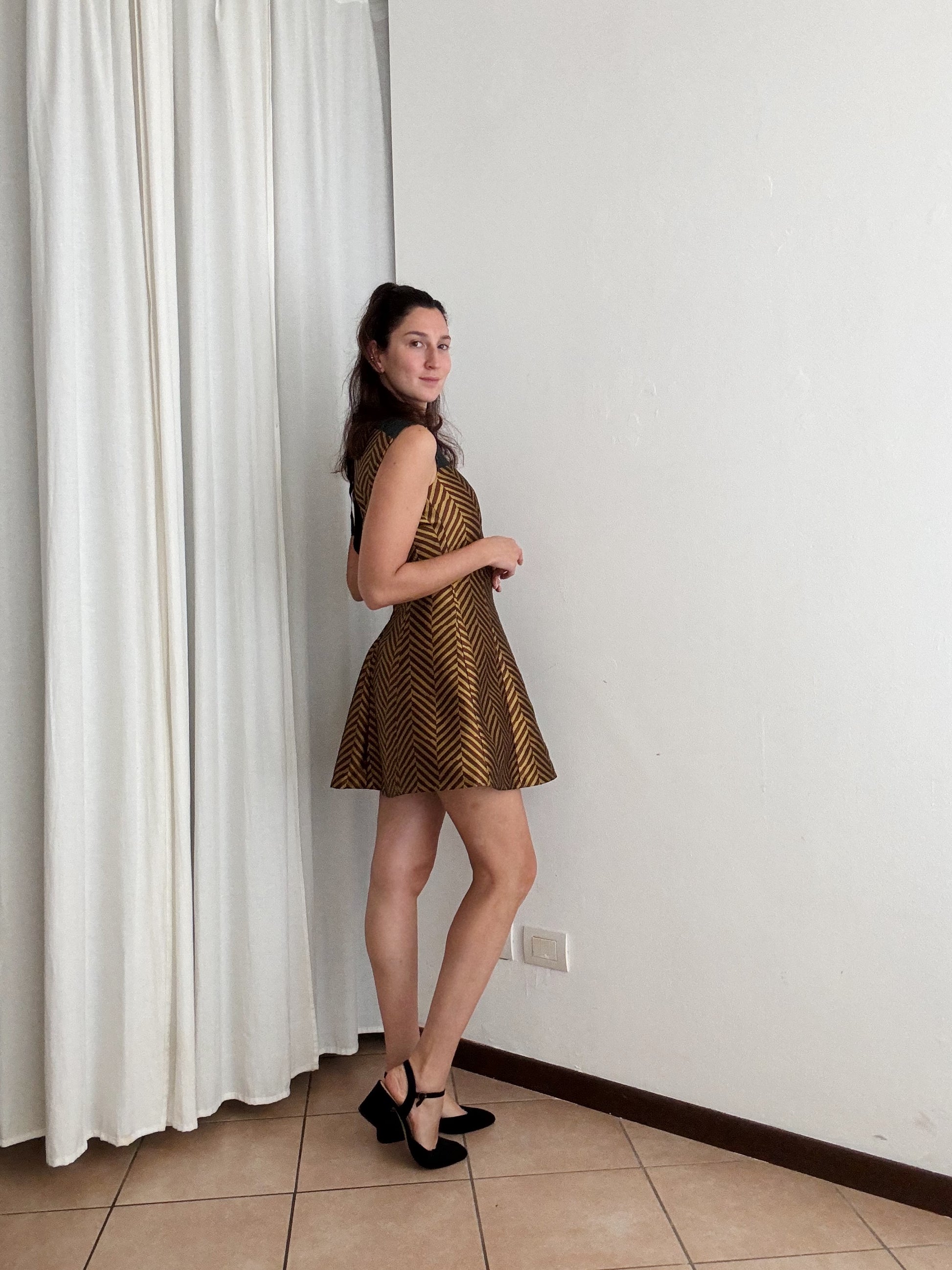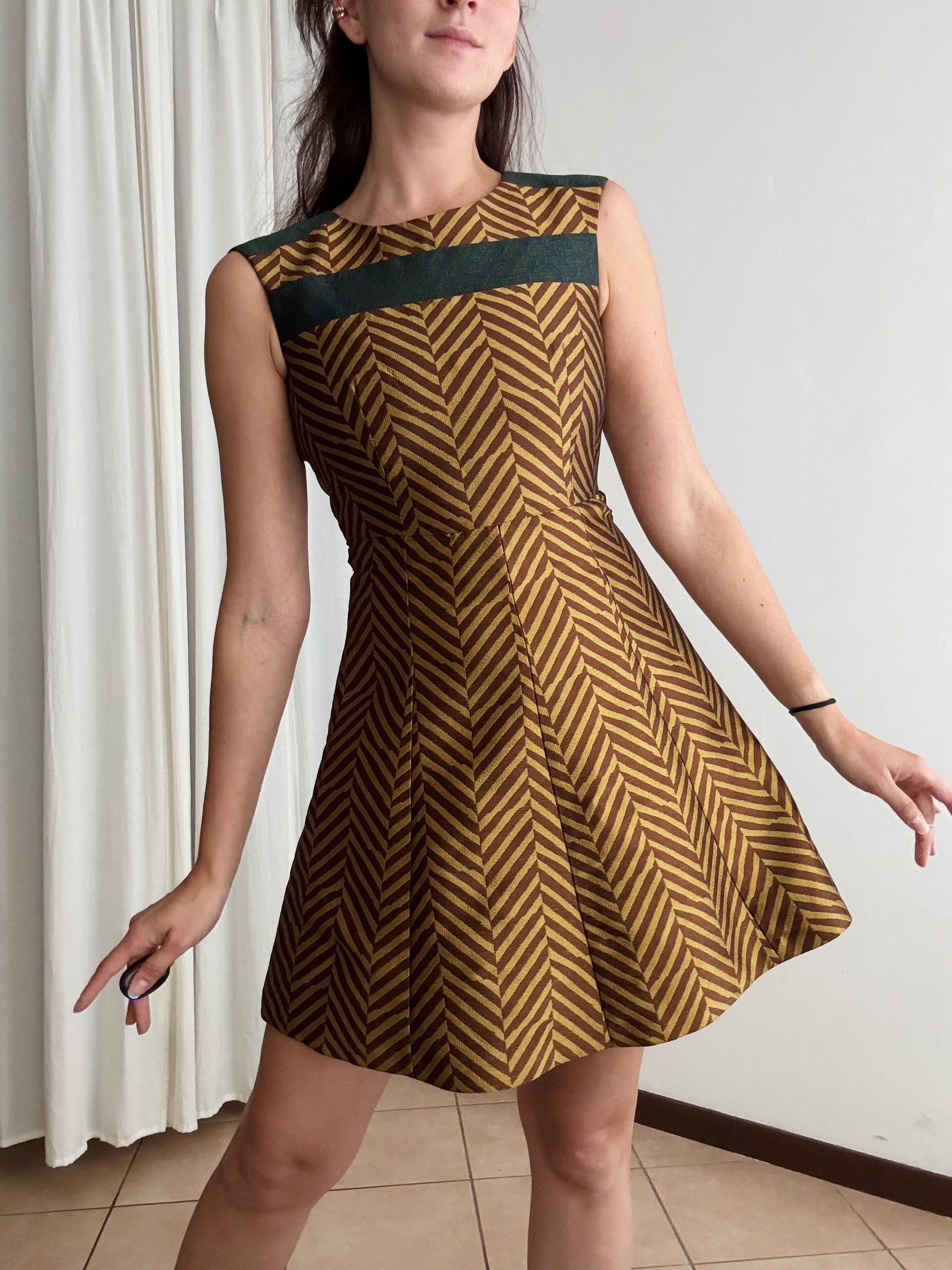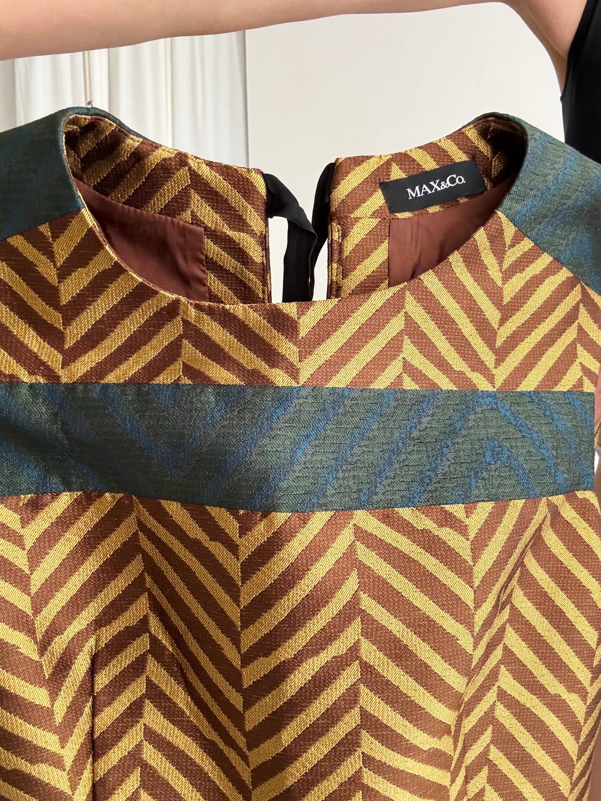 Abito bronzo firmato Max & Co taglia 38. Taglio svasato strutturato. Misure: ascelle 42, vita 34, lunghezza 86.