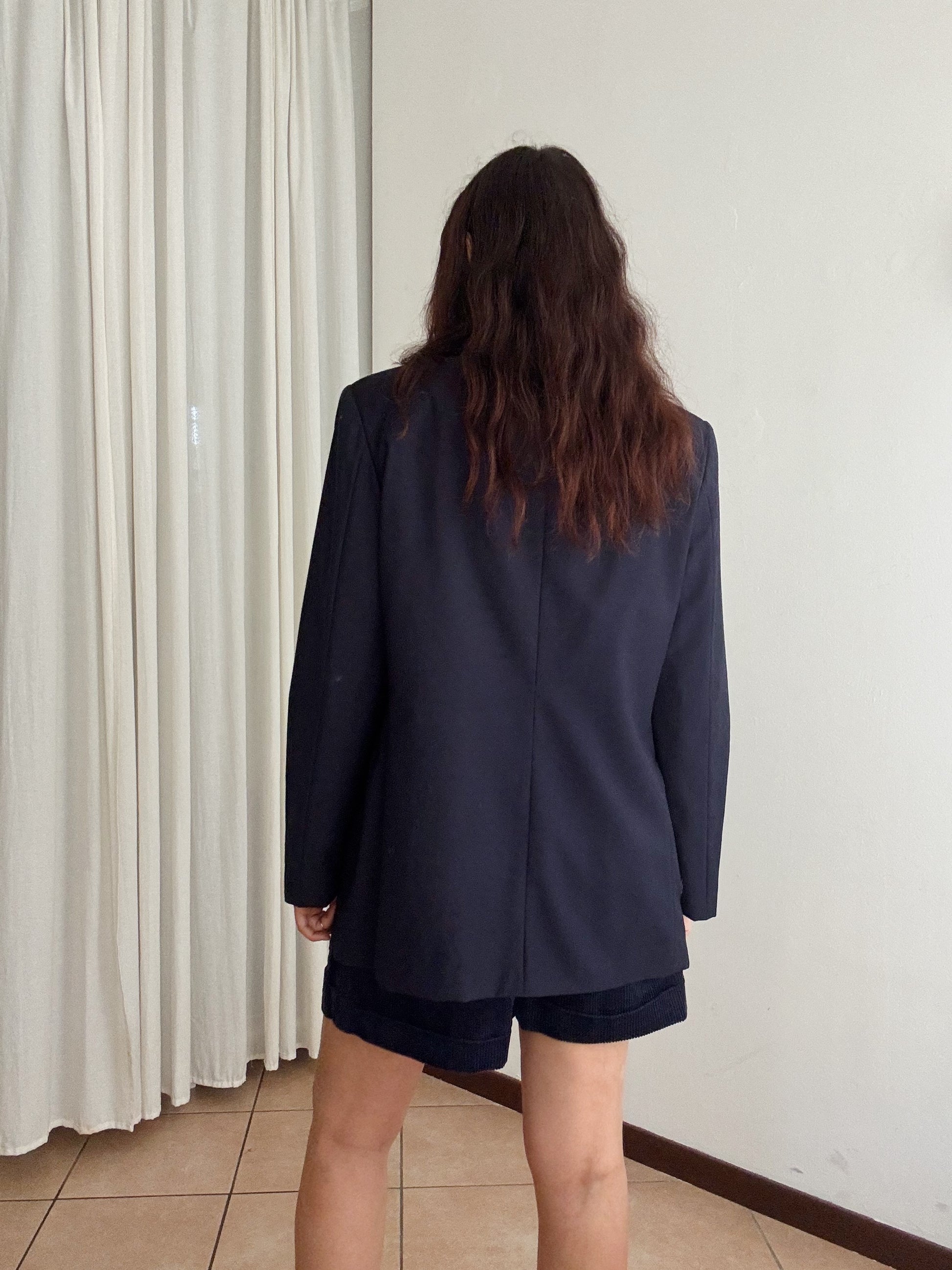 Blazer vintage in pura lana blu taglia 48, nuovo con il cartellino. Misure: spalle 45, ascelle 54, maniche 63, lunghezza 78