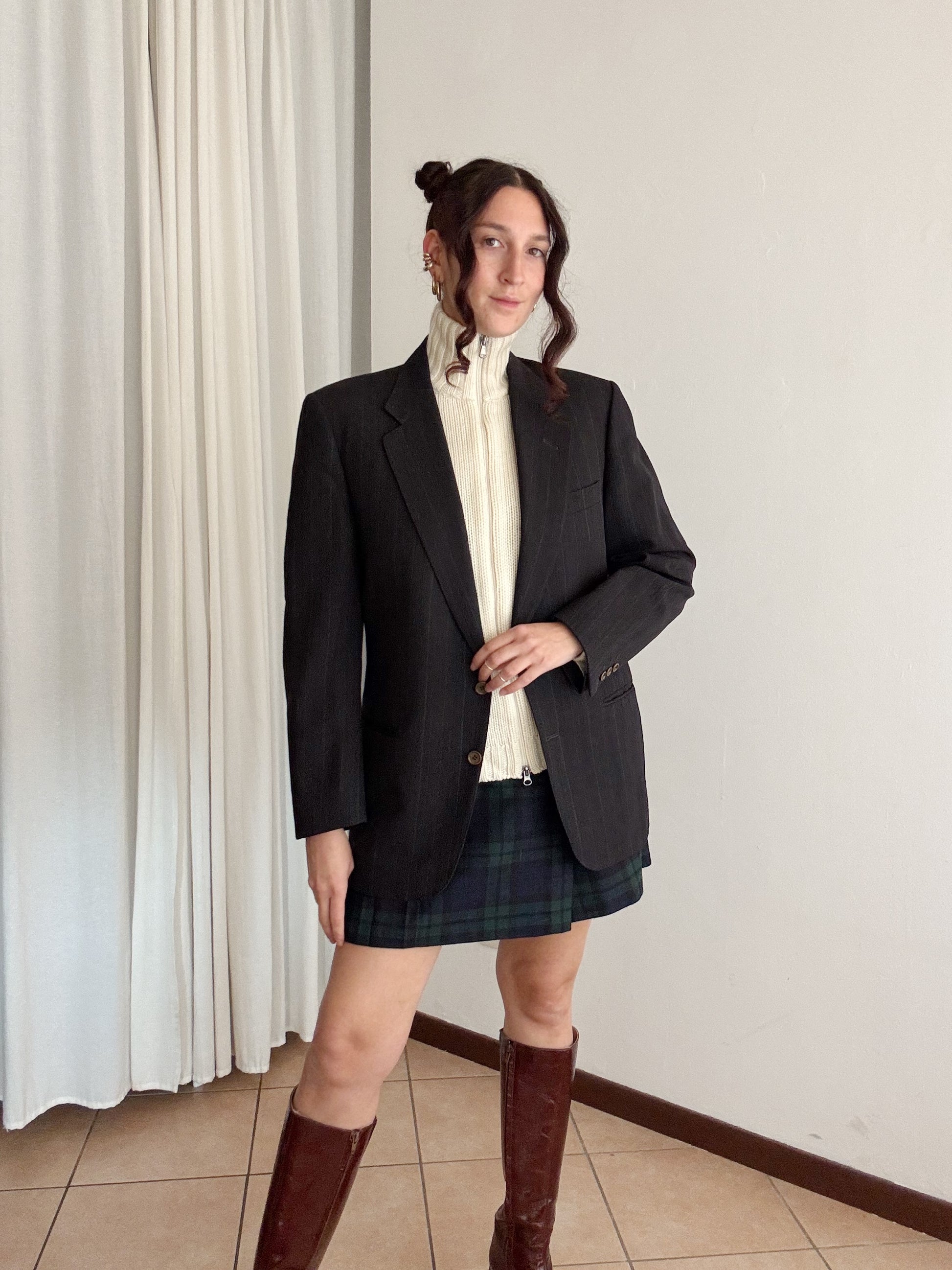 Blazer a righe grigio 100% lana firmato Lanvin. Taglia 48 da uomo ma ok per taglie più piccole per un fit oversize. Misure: spalle 45, ascelle 52, maniche 62, lunghezza 77