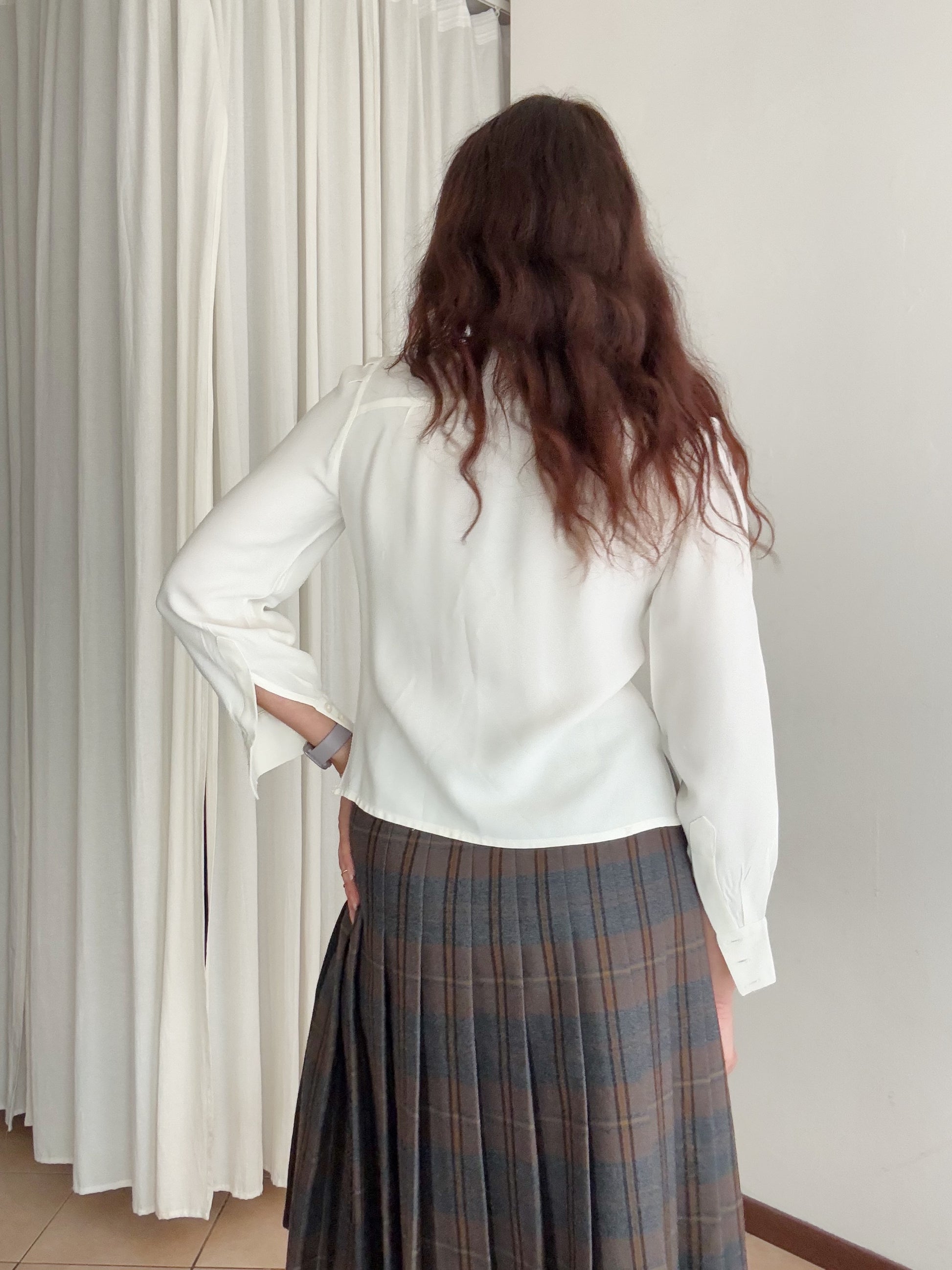Camicia vintage bianca, veste taglia S. Misure: spalle 33, ascelle 47, maniche 60, lunghezza 53.
