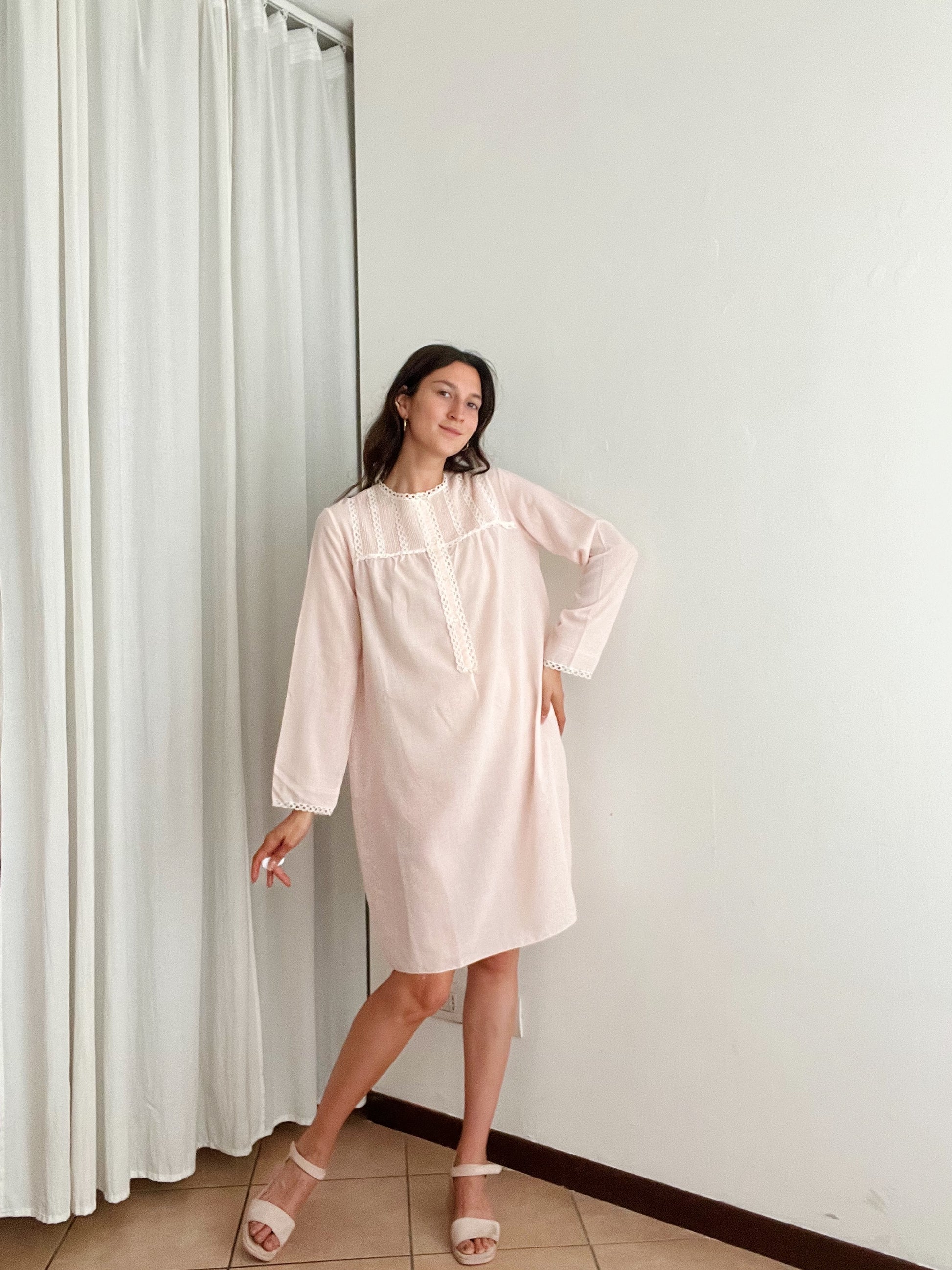 Camicia da notte vintage, veste fino a una taglia L. Misure: spalle 41, ascelle 54, lunghezza 97.