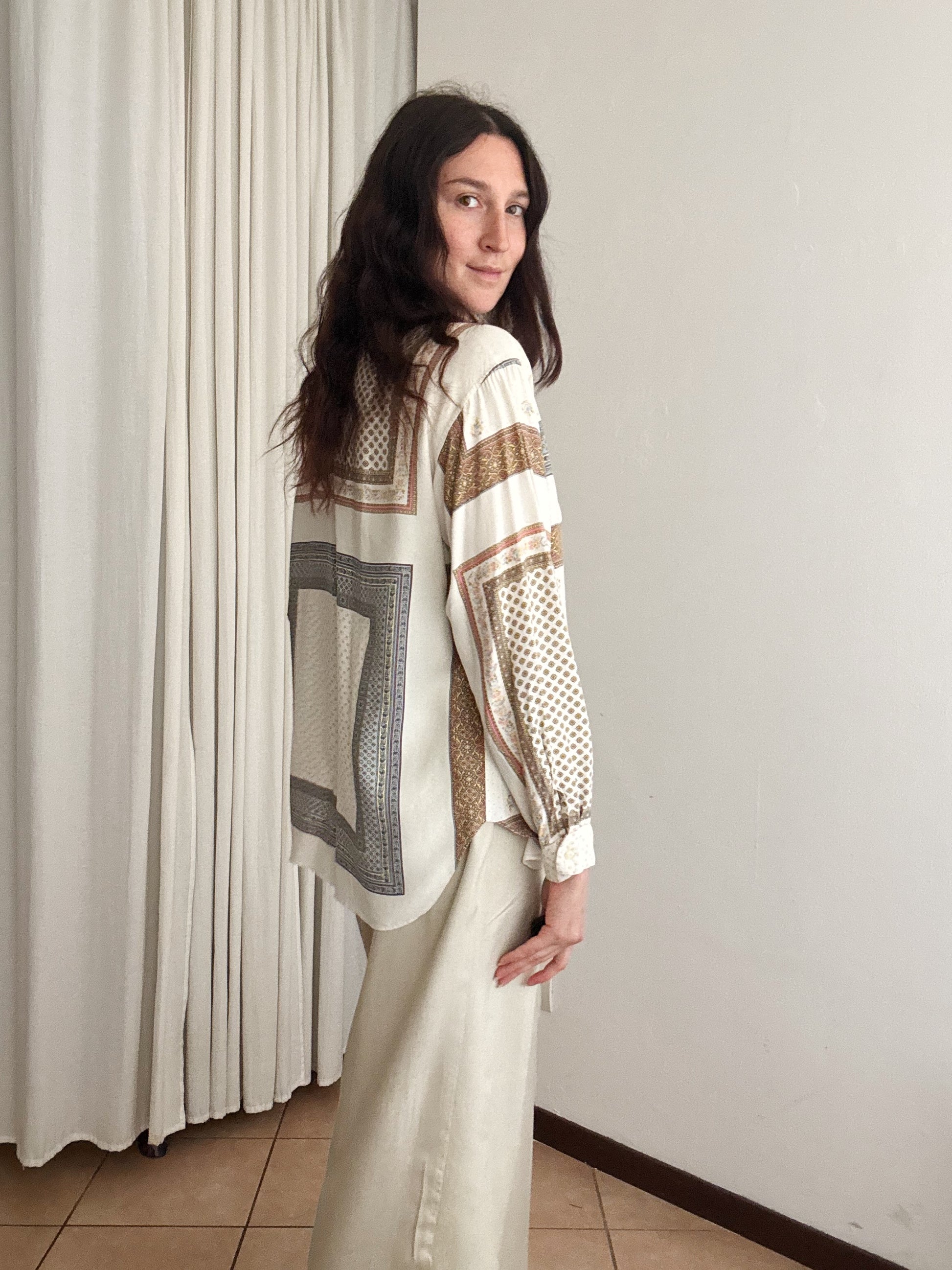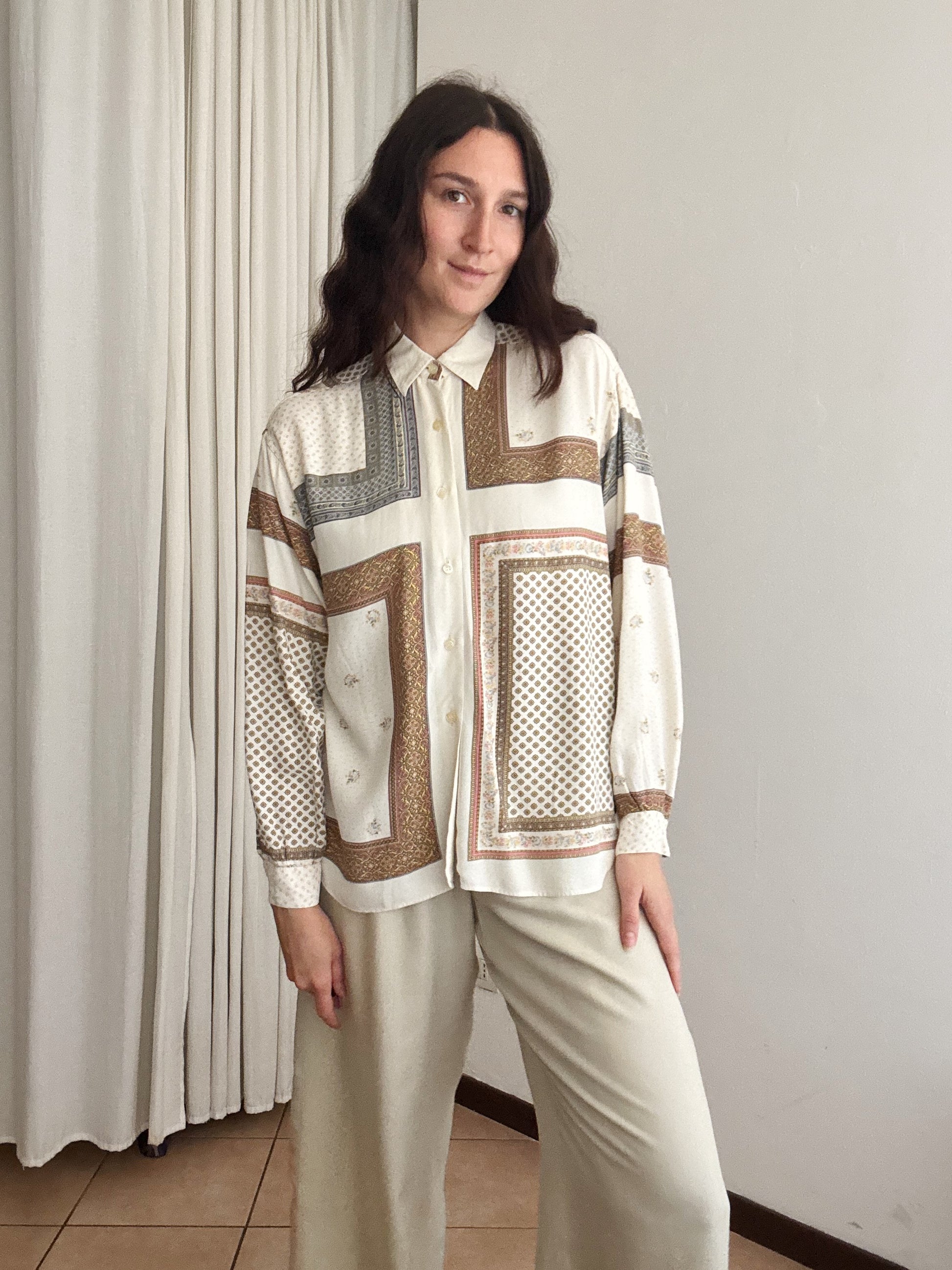 Camicia vintage bianca/panna in viscosa, veste taglia M.