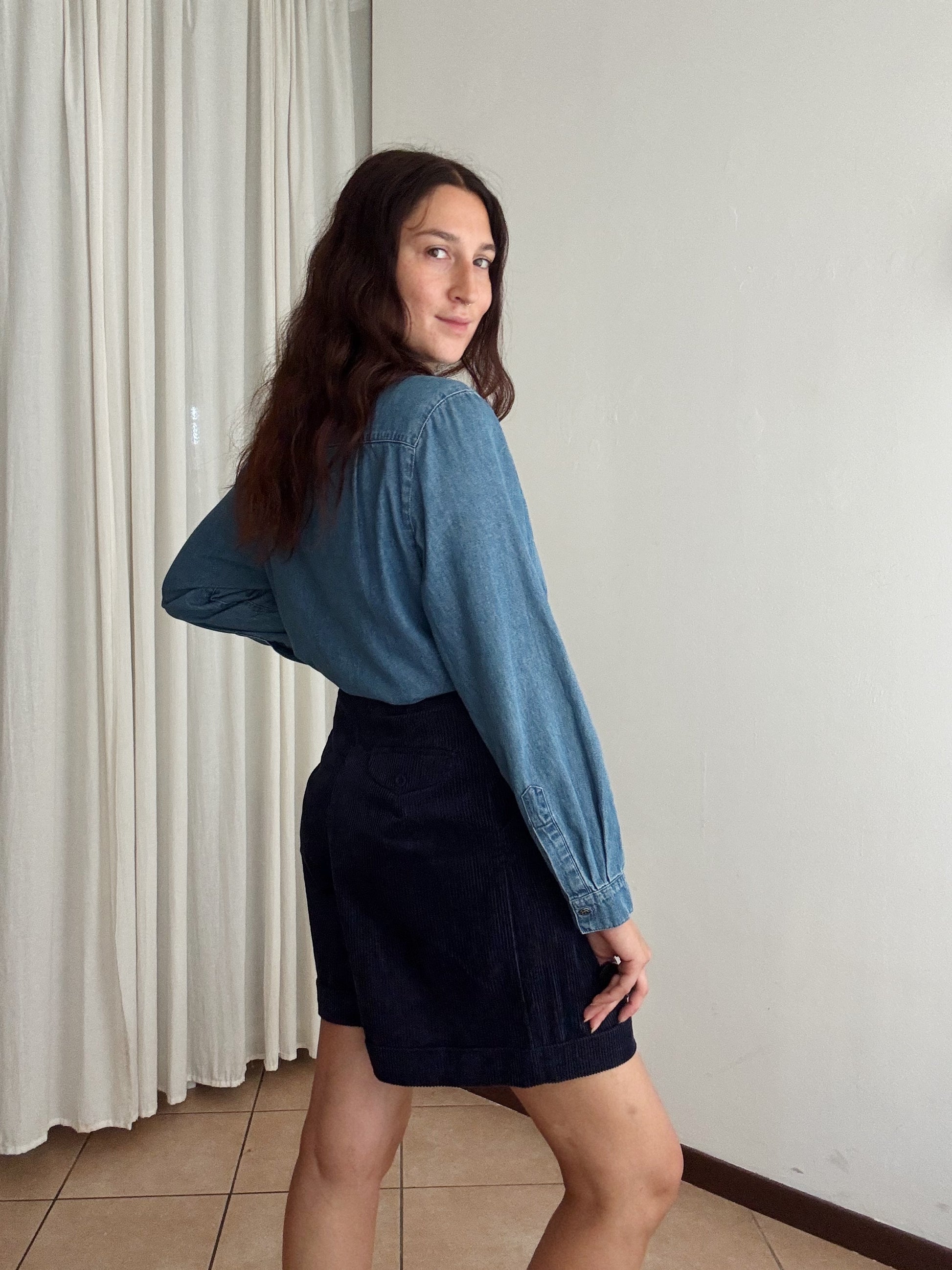 Camicia di jeans vintage con ricami floreali. Taglia M. Misure: spalle 42, ascelle 56, maniche 62, lunghezza 72