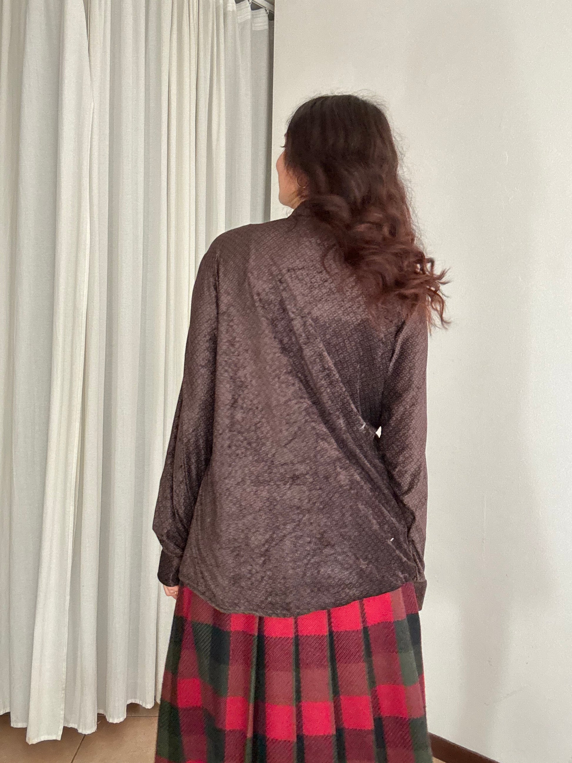 Camicia da uomo vintage ma nuova con il cartellino in velluto marrone taglia XL con vestibilità aderente. Misure: spalle 44, ascelle 55, maniche 67, lunghezza 74.