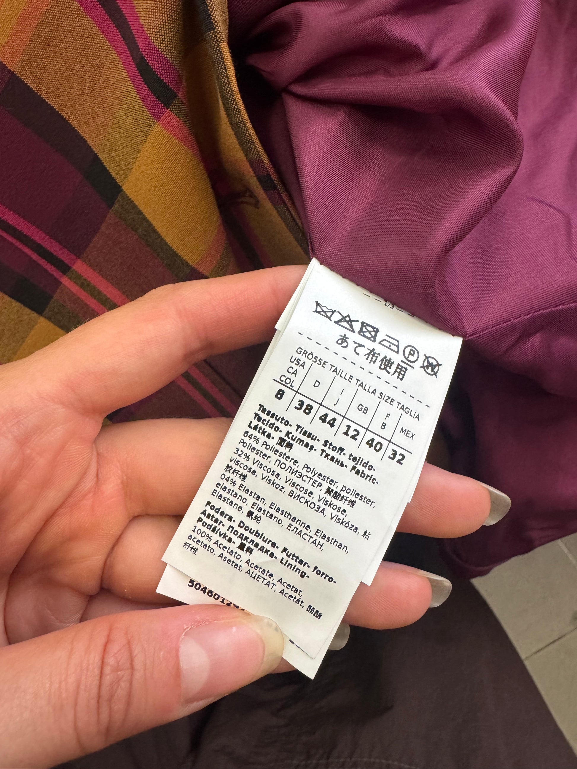 Completo a quadri colorato composto da blazer e pantalone firmato EMME Marella. Taglia 44. Misure: spalle 39, ascelle 50, maniche 61, lunghezza 68. Pantaloni: vita 40, fianchi circa 48, cavallo 29/32, coscia 27, lunghezza gamba dal cavallo 73