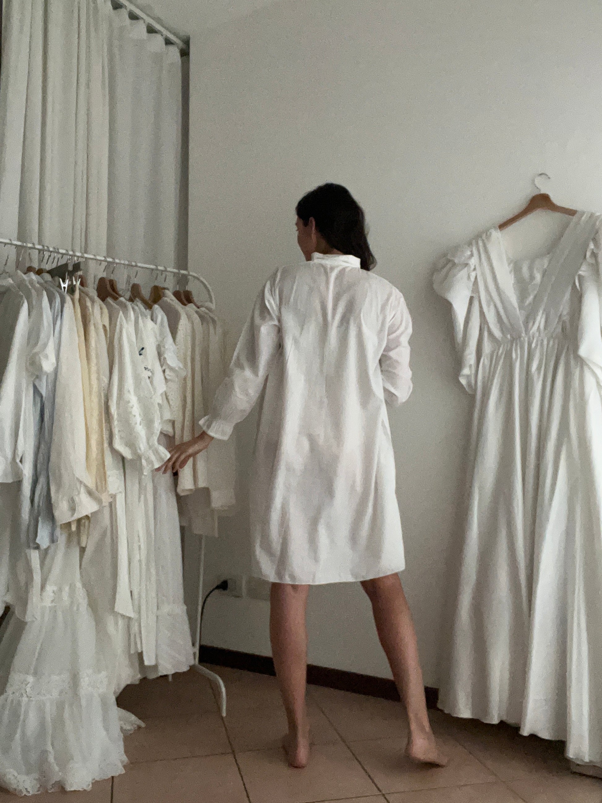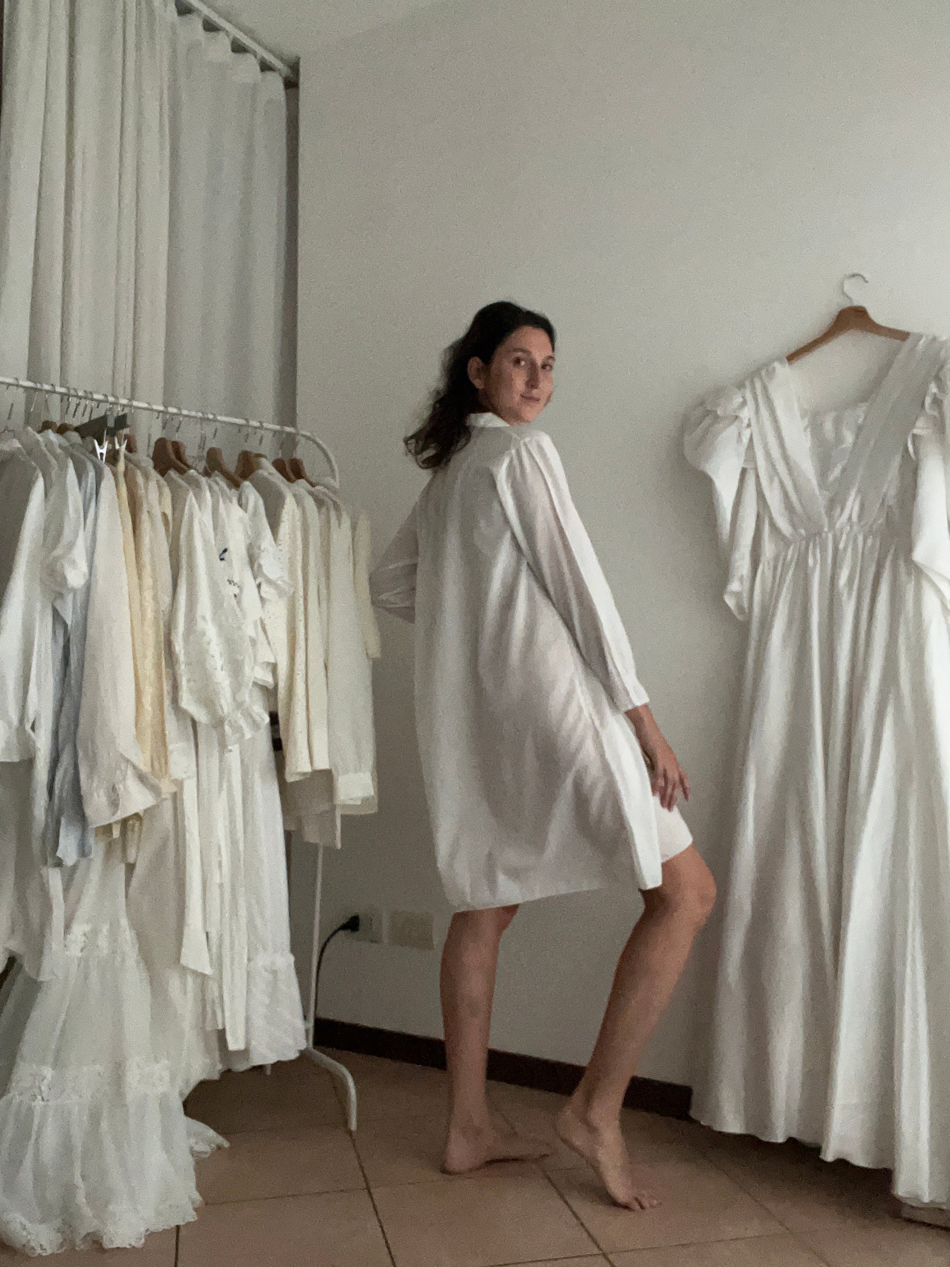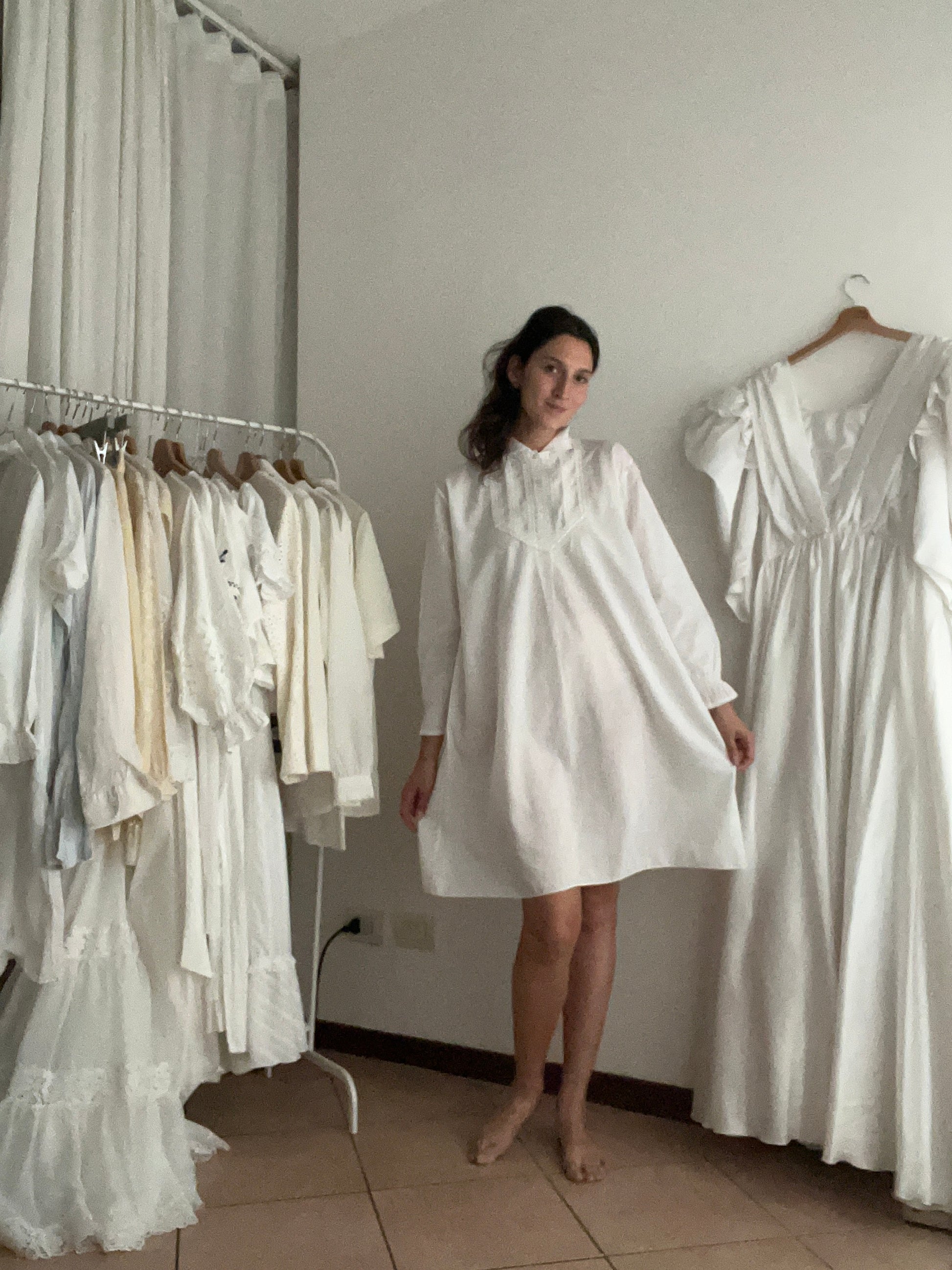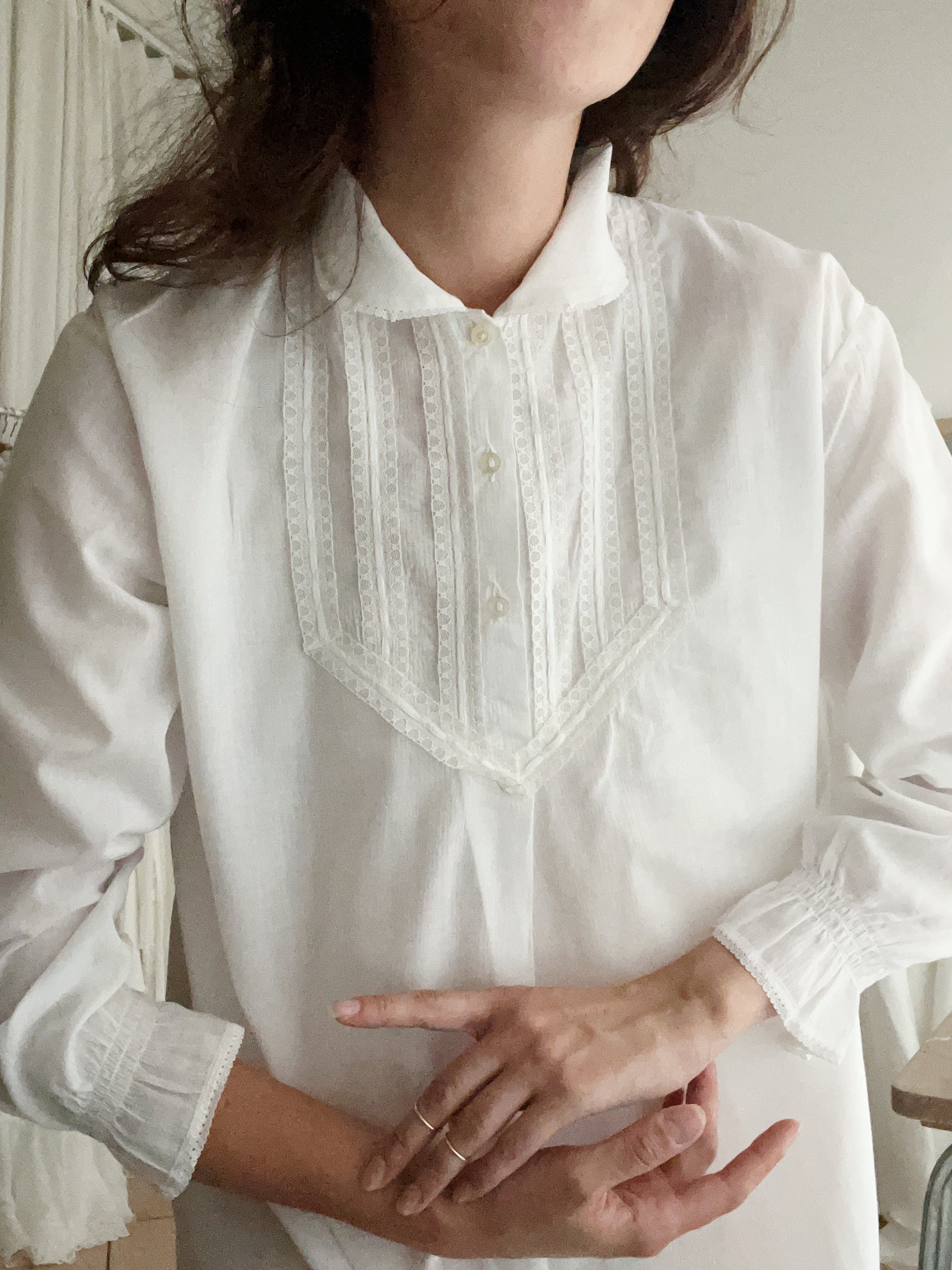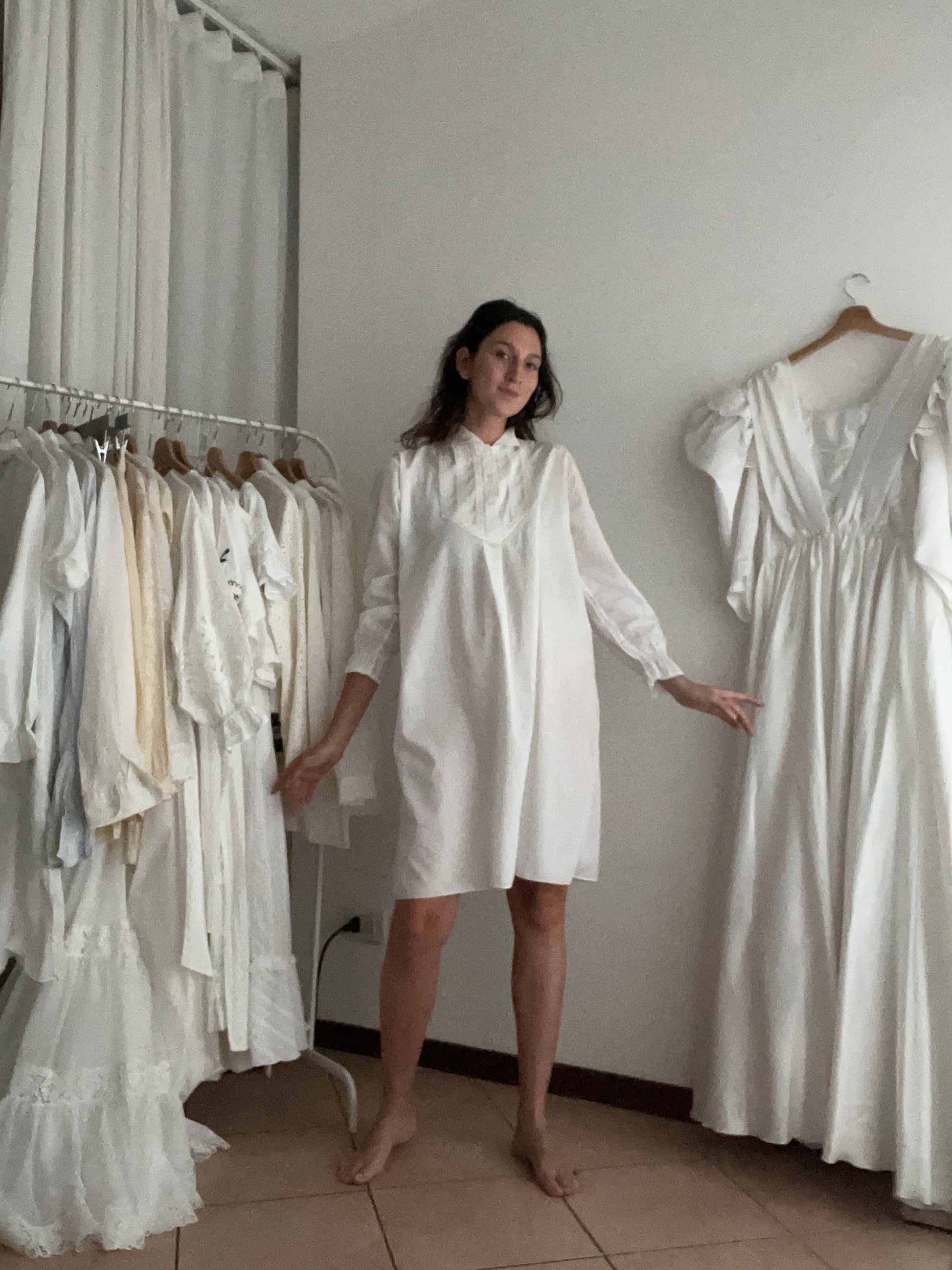 Camicia da notte vintage, veste fino a una taglia M. Bianca con pizzi. Misure: spalle 43, ascelle 54, lunghezza 94. 65% cotone