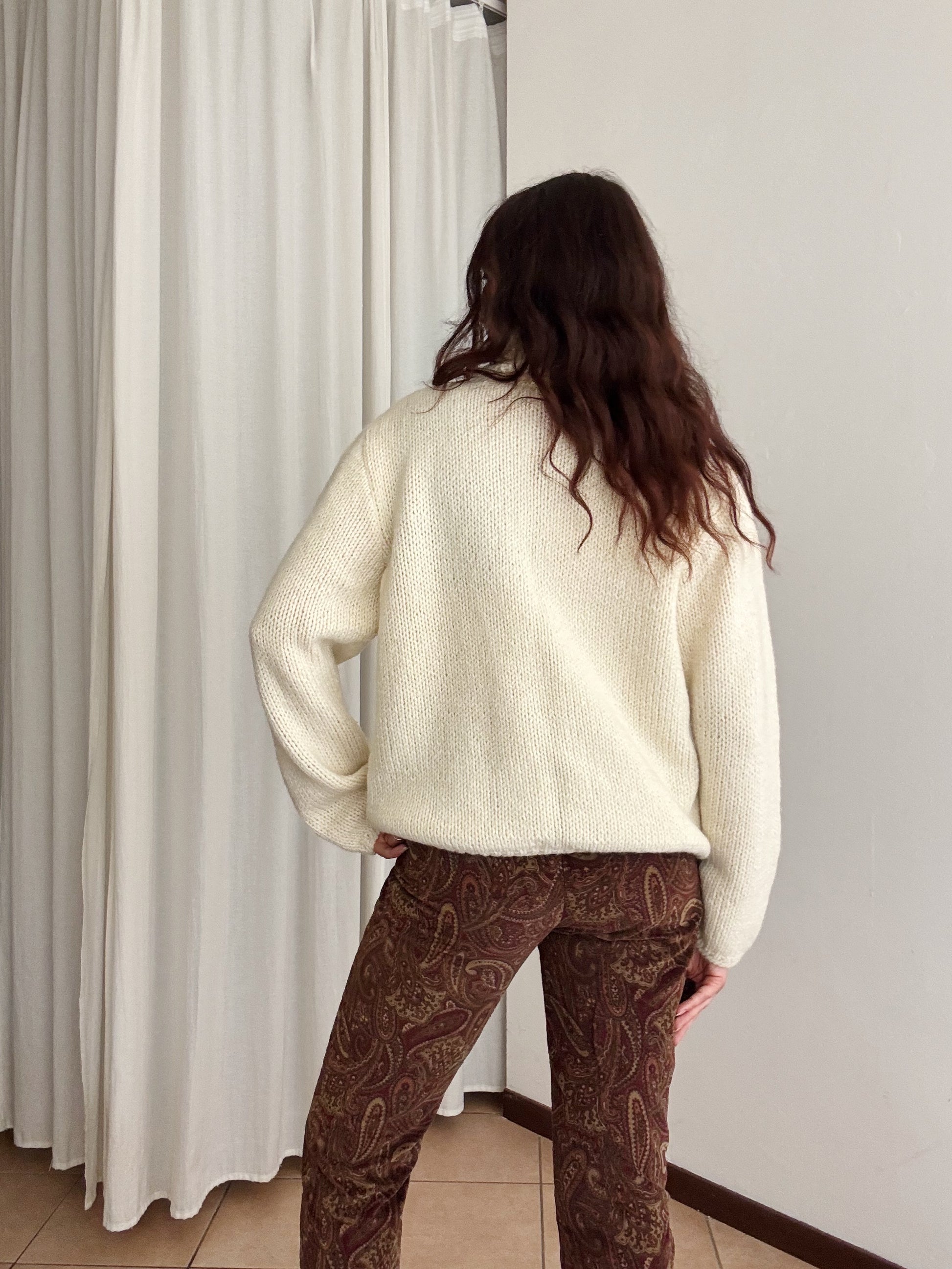 Maglione vintage bianco panna in lana, taglia 44. Misure: spalle 46, ascelle 56, maniche 58, lunghezza 56