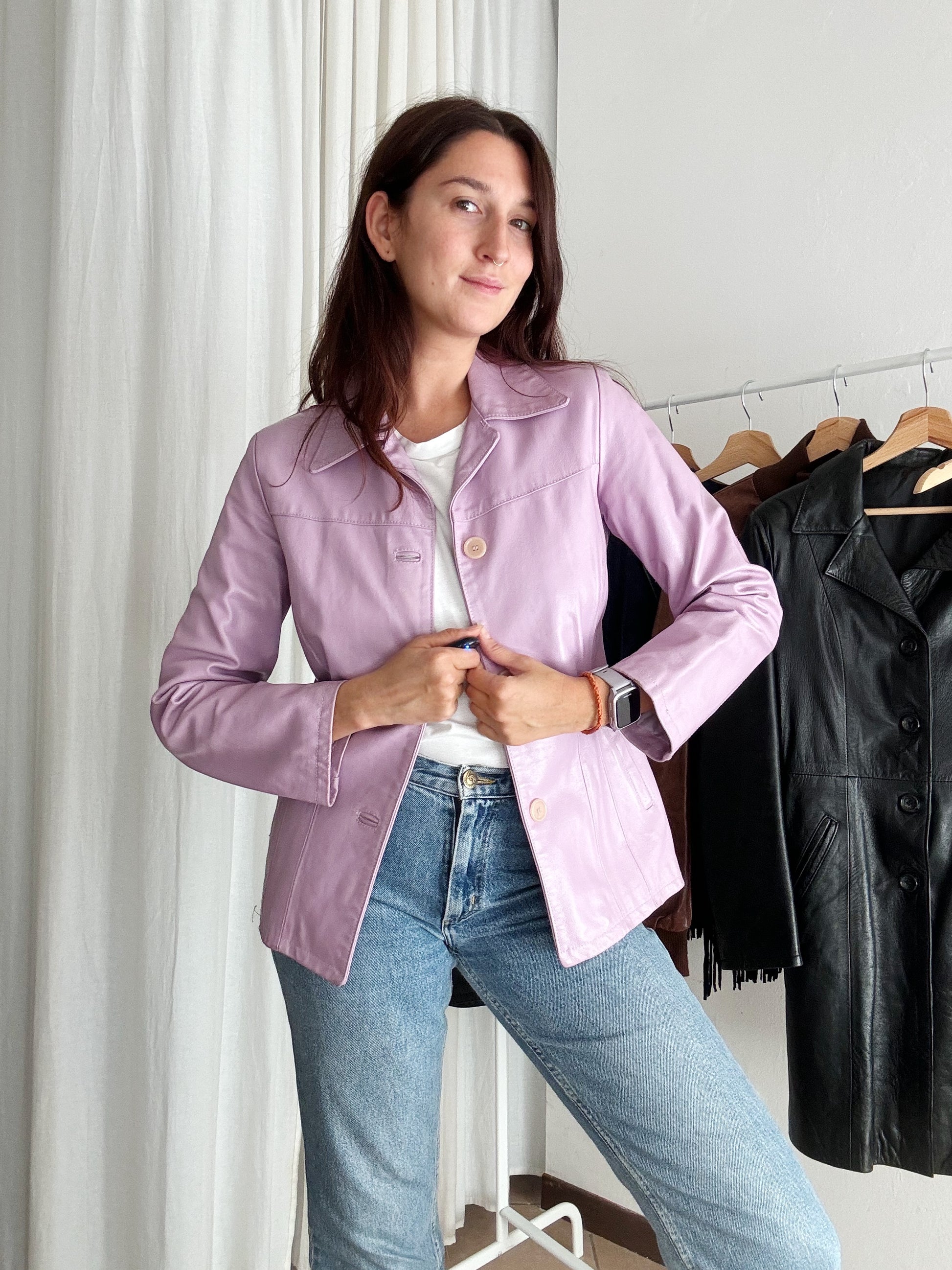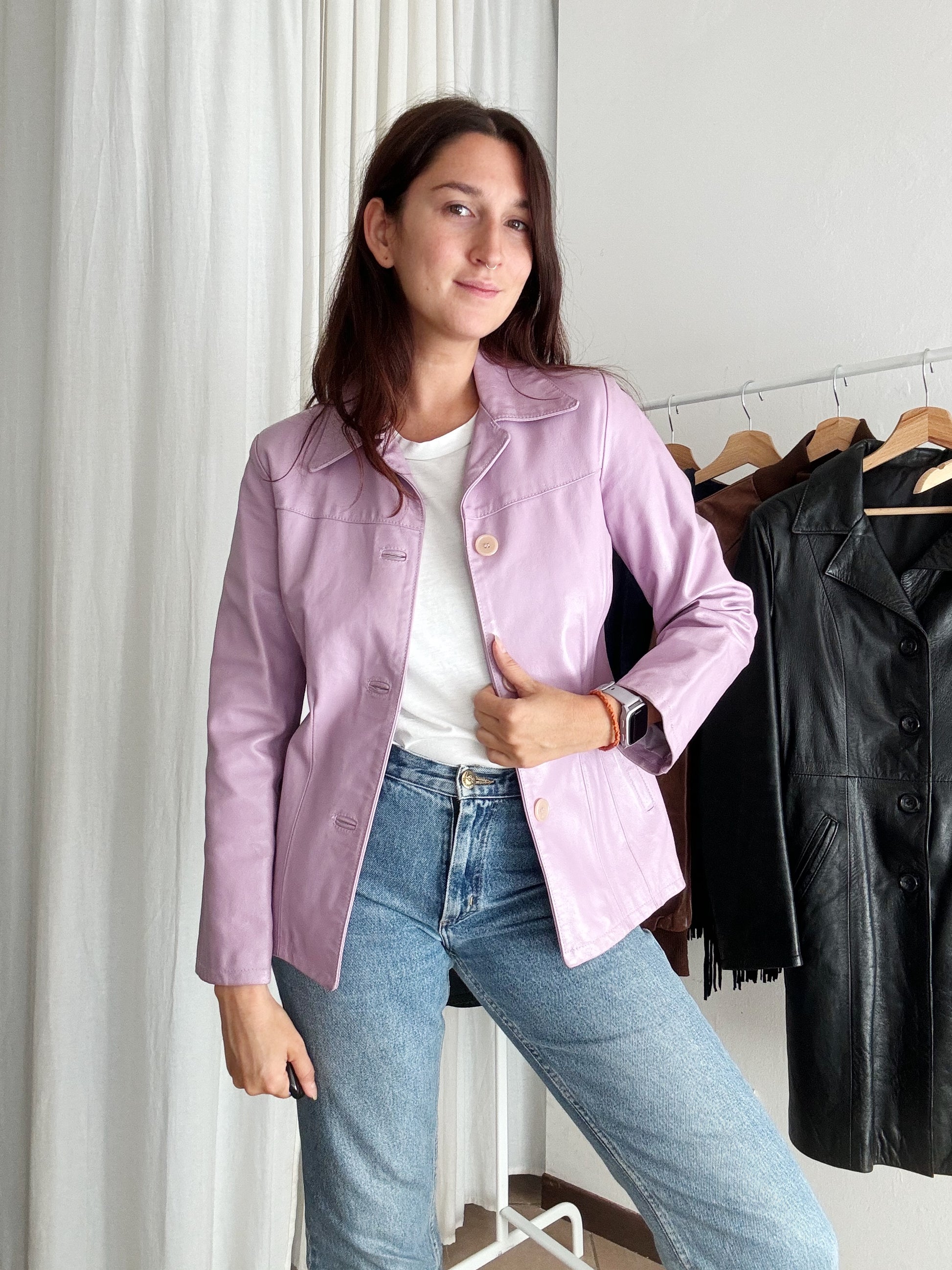 Giacca in pelle lilla S