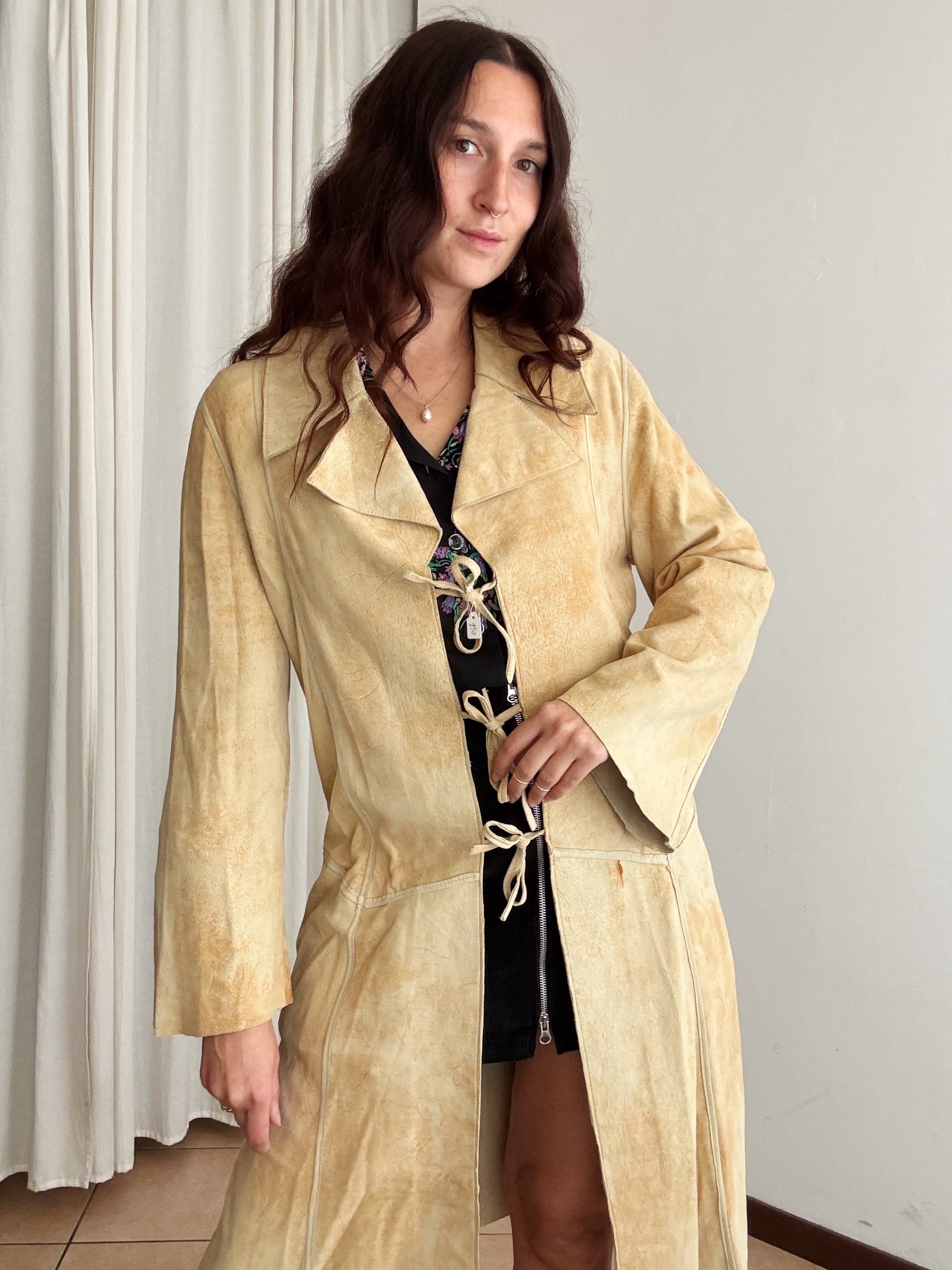 Giacca in pelle lunga scamosciata M/L