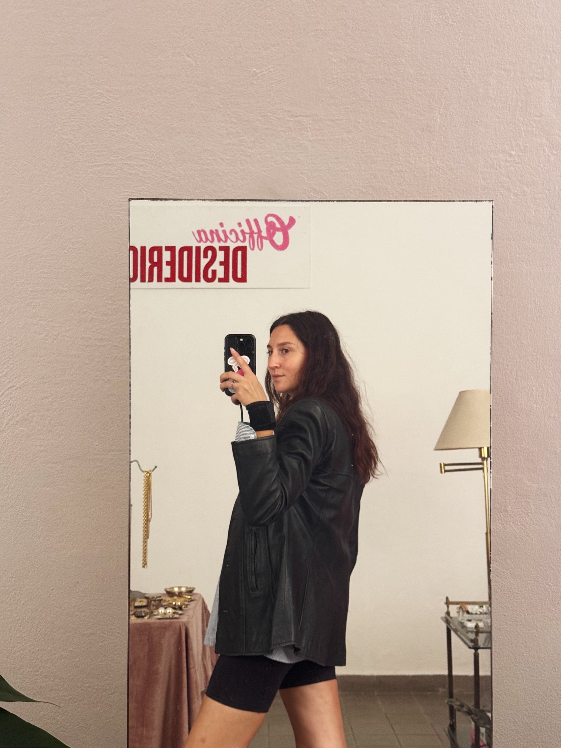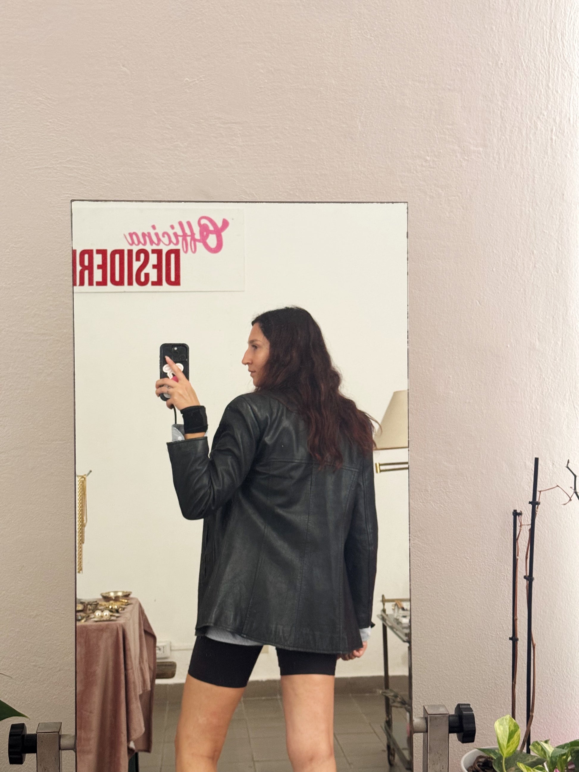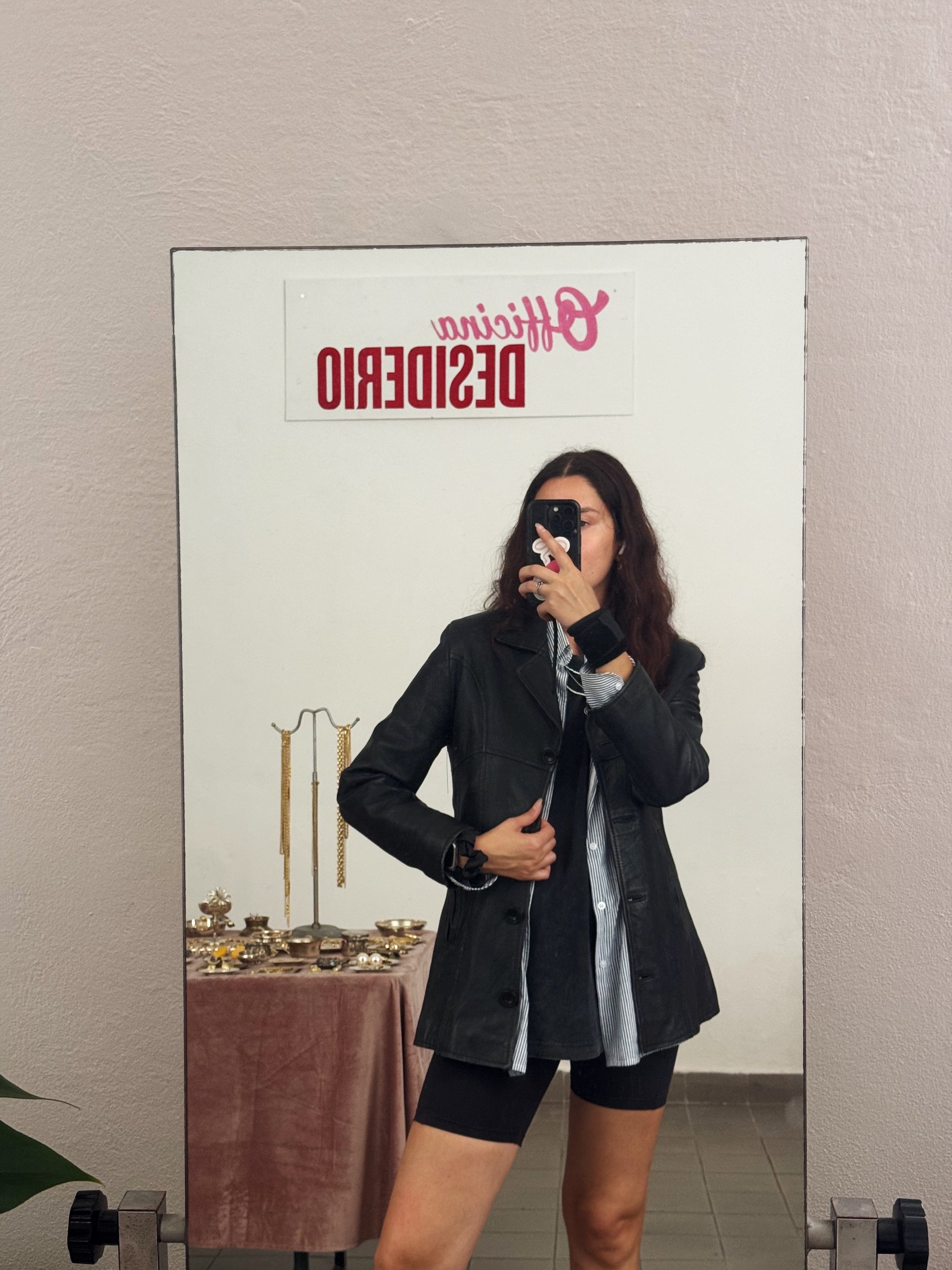 Giacca blazer in pelle vera vintage nera, taglia S.