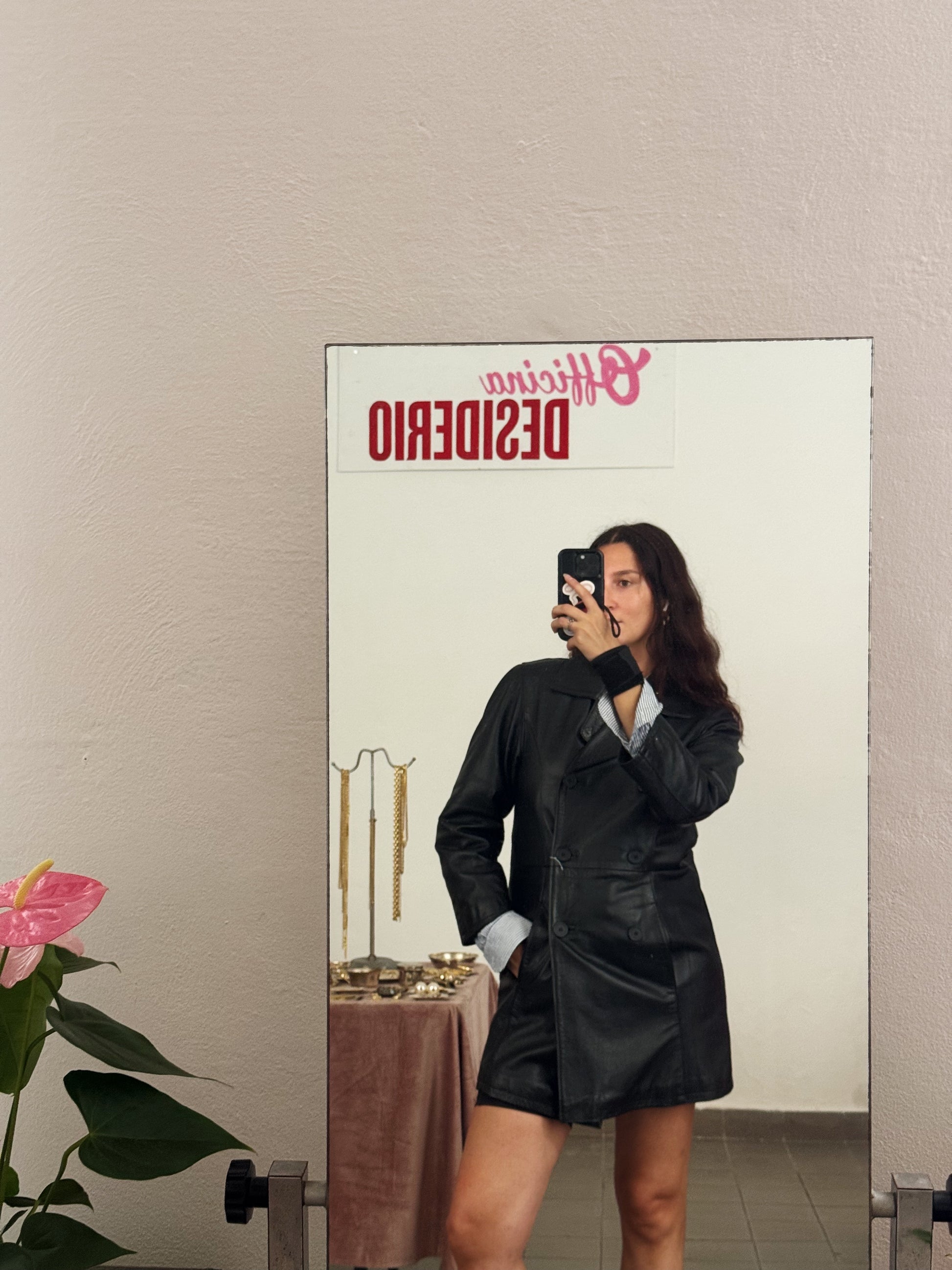 Giacca in pelle vera vintage nera, taglia S a doppiopetto
