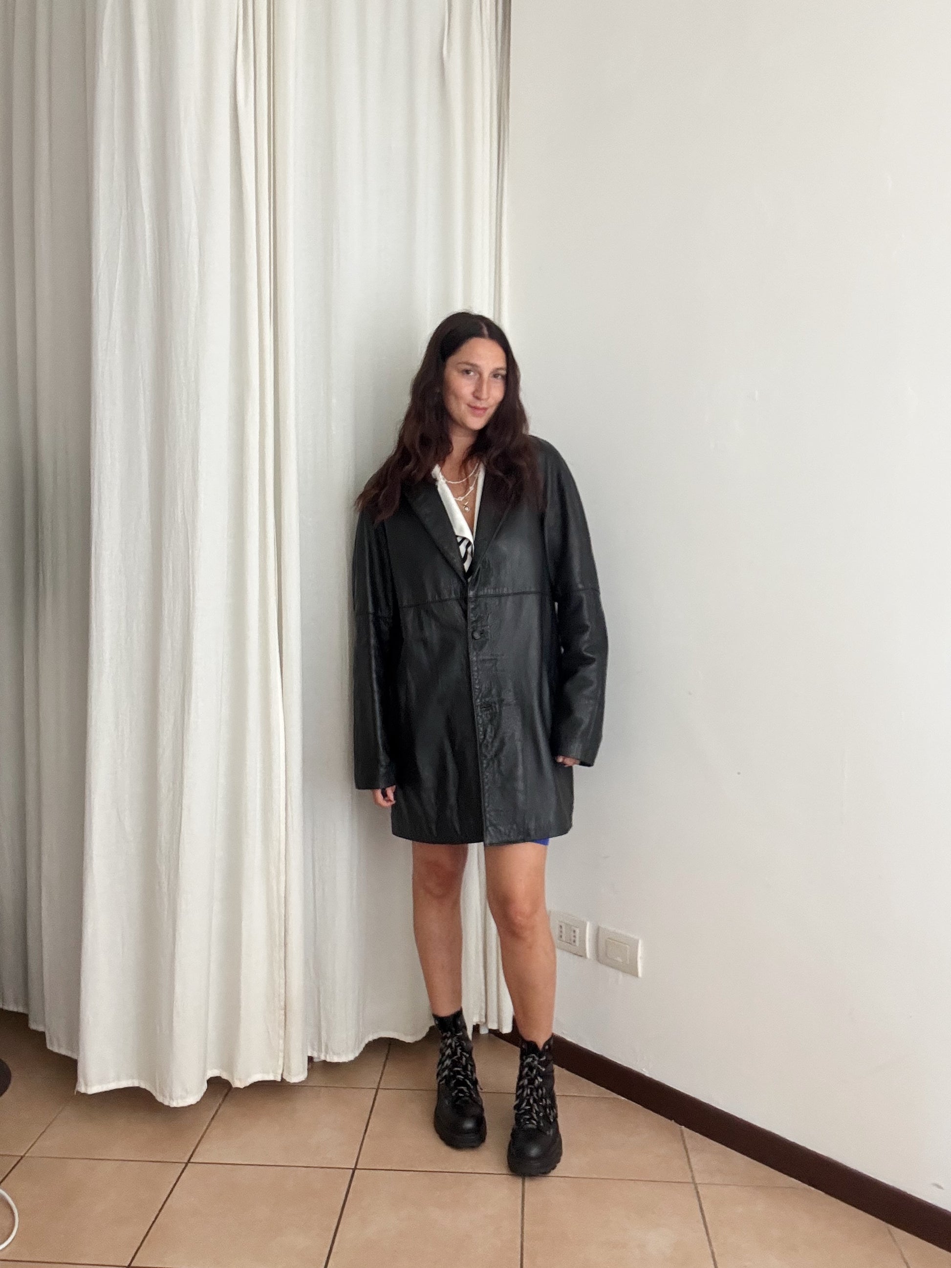 Giacca in pelle nera unisex L