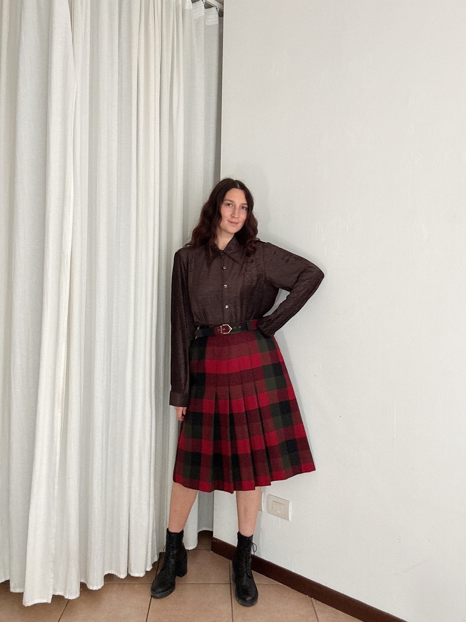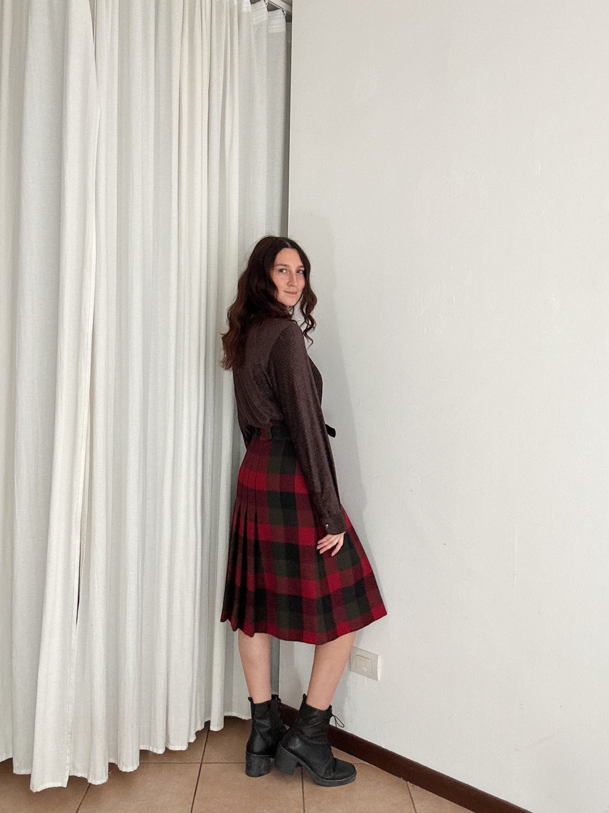 Gonna a quadri tirolese firmata Steinbock in pura in lana a quadri rossi e verdi, veste fino a una taglia XL ma ok anche per taglie più piccole portata a vita bassa o stringendola con la sua cintura. Misure: vita 39, lunghezza 67. 100% lana