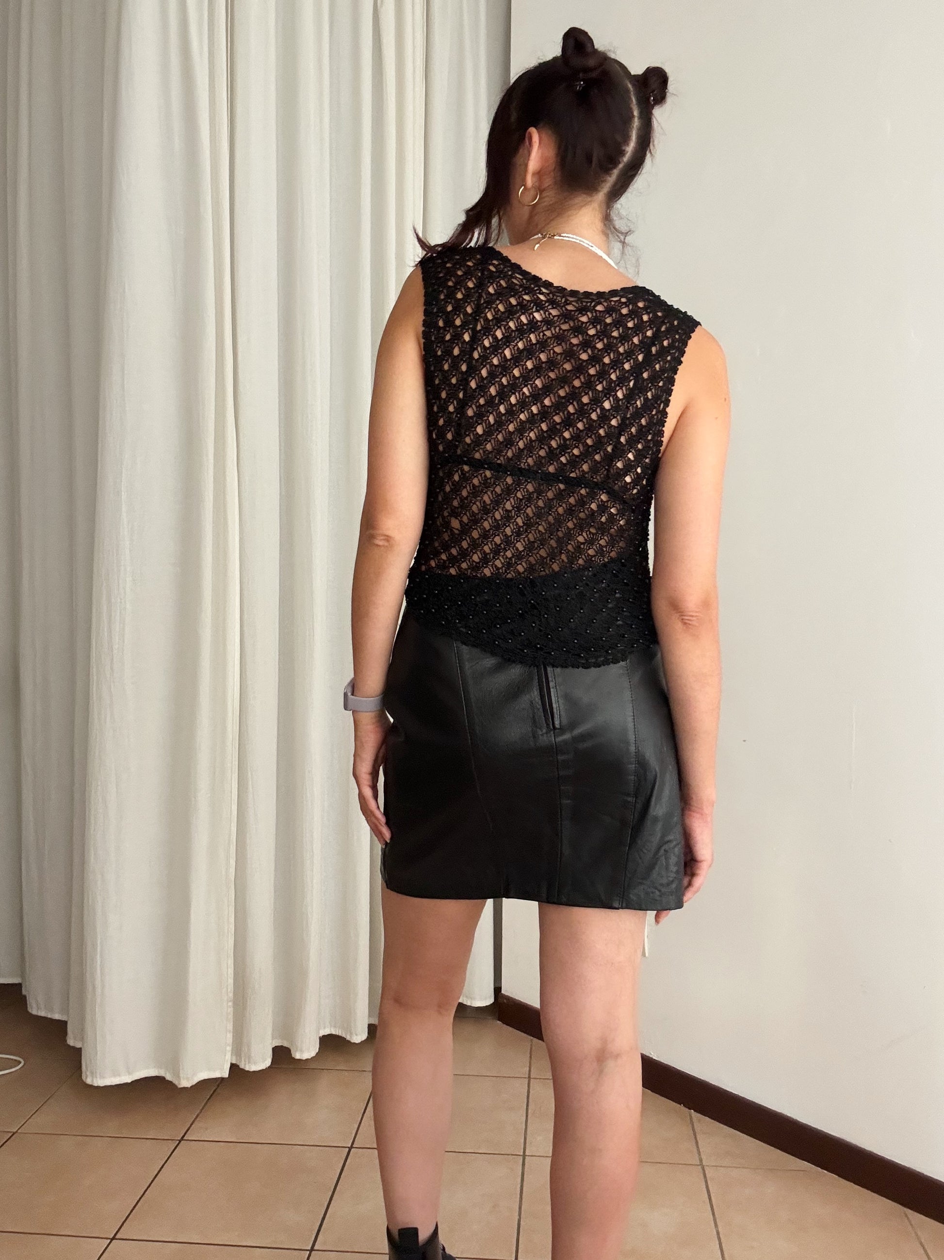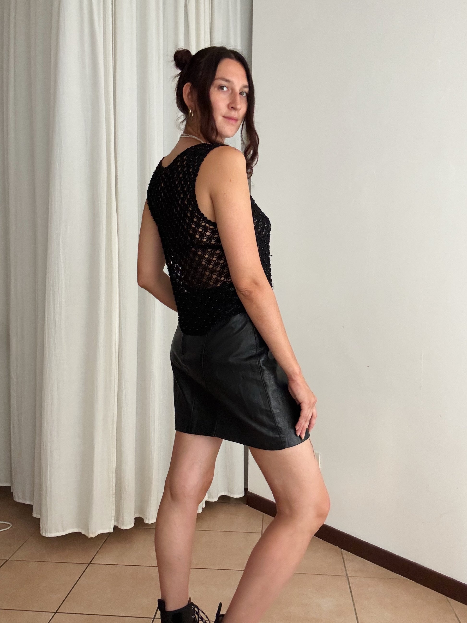 Gonna in pelle nera vintage taglia 46. Misure: vita 38, fianchi circa 49, lunghezza 44