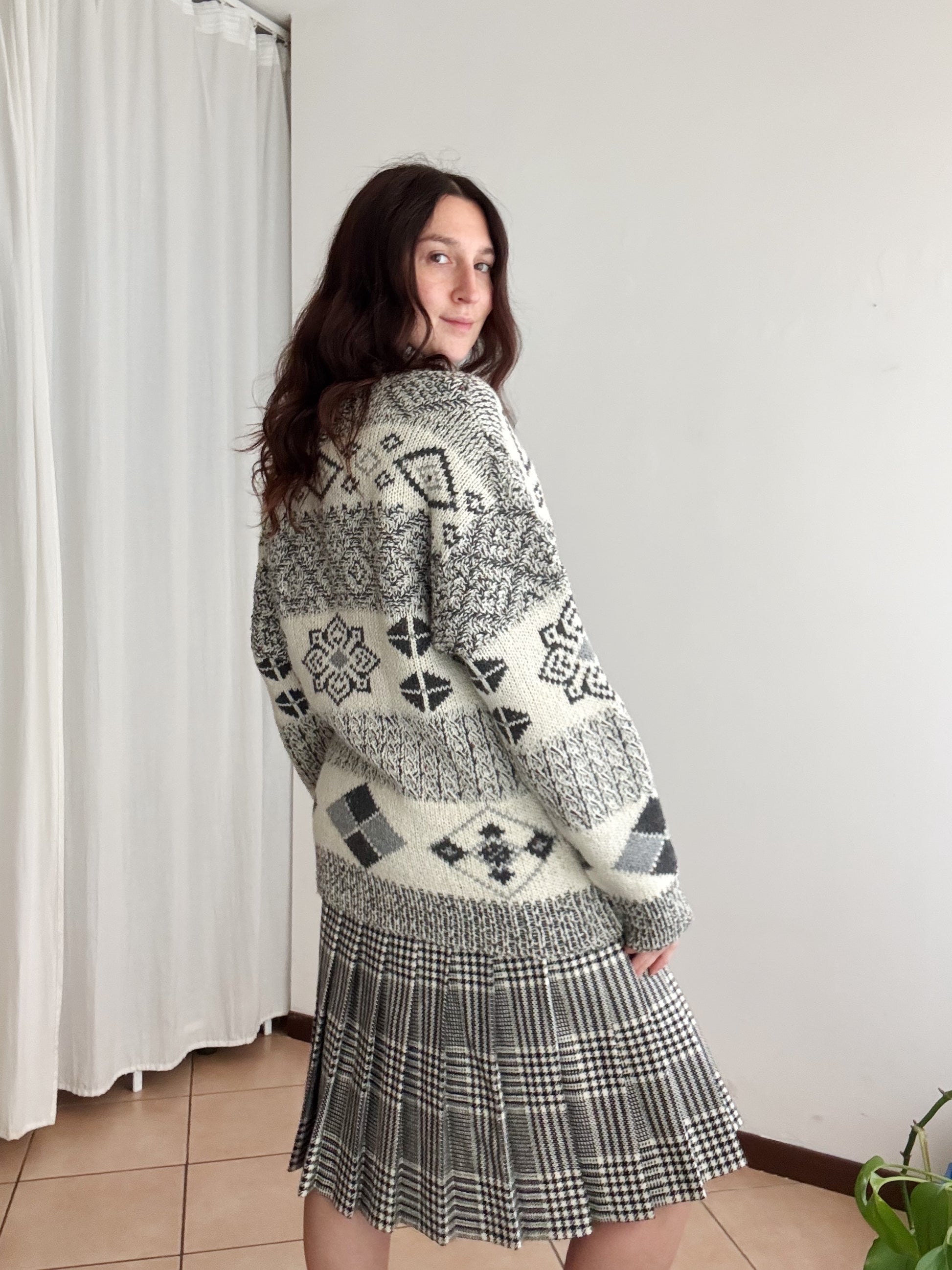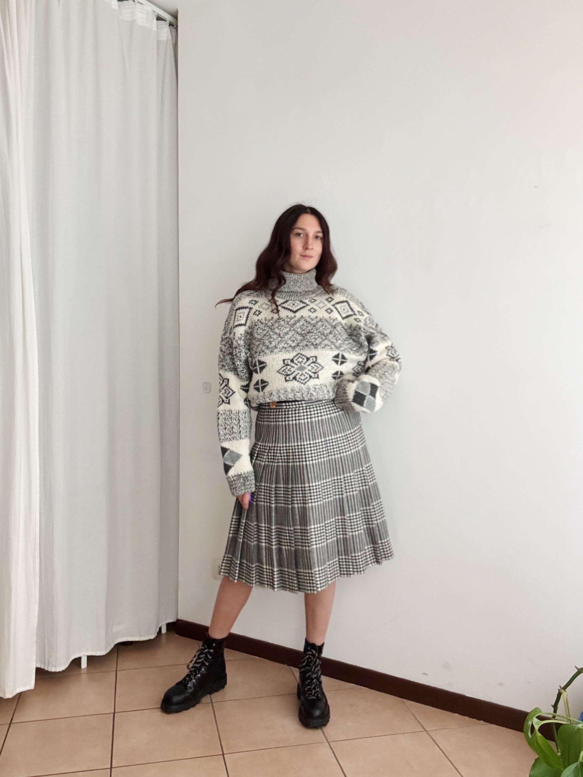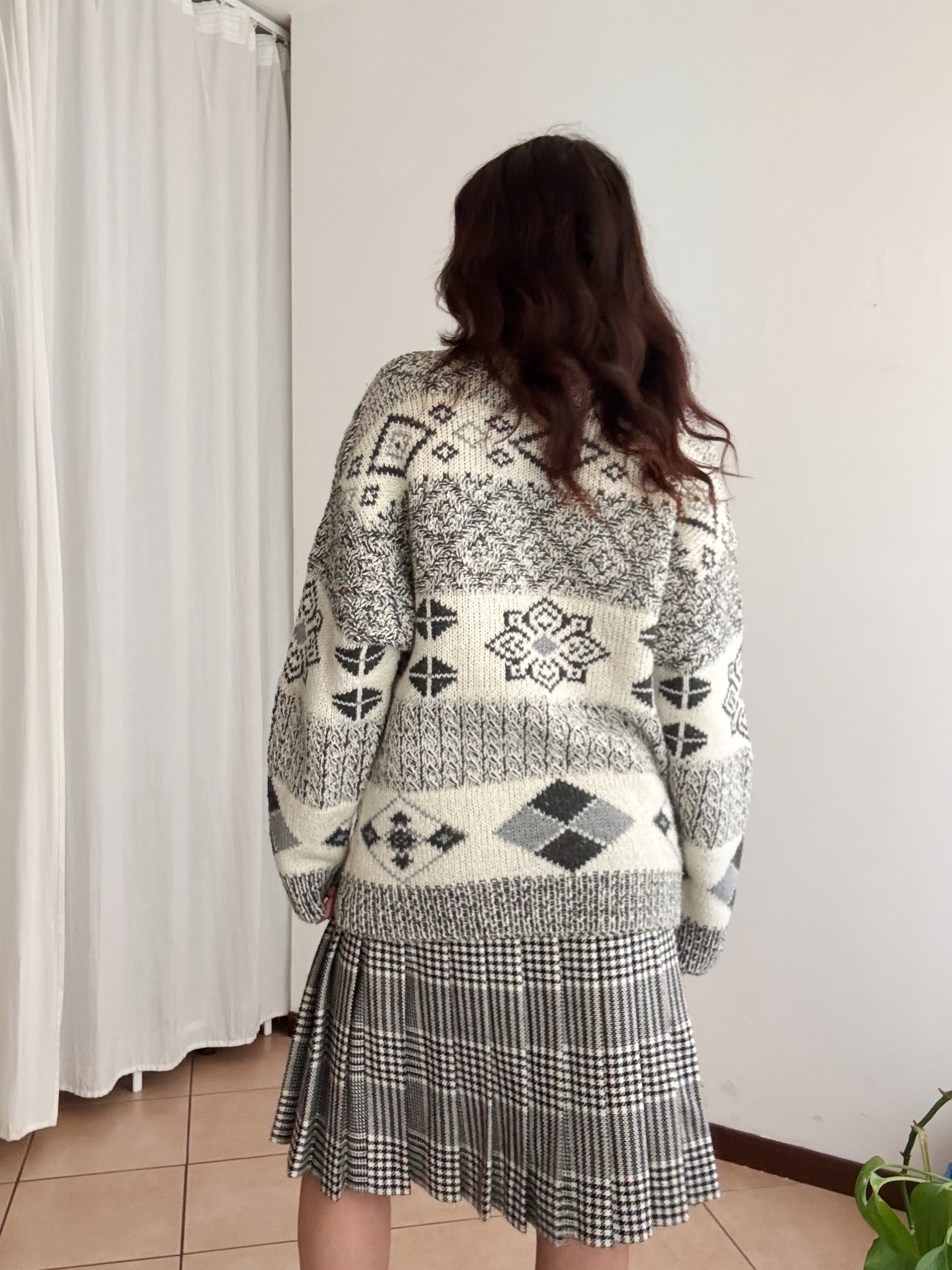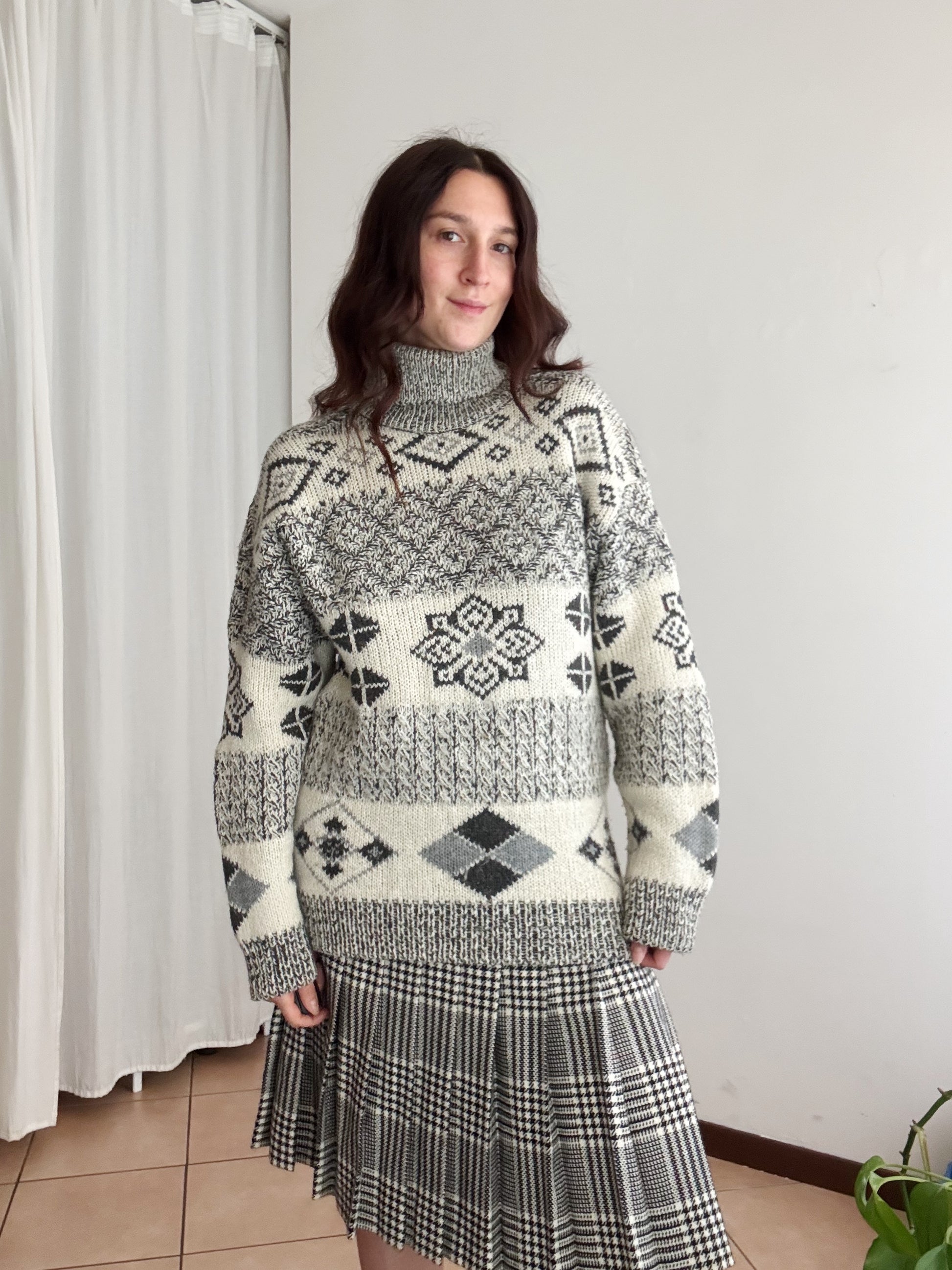 Maxi maglione vintage unisex dolcevita grigio. Taglia L in 50% lana 50% acrilico. Misure: spalle 59, ascelle 55, maniche 52, lunghezza 69.