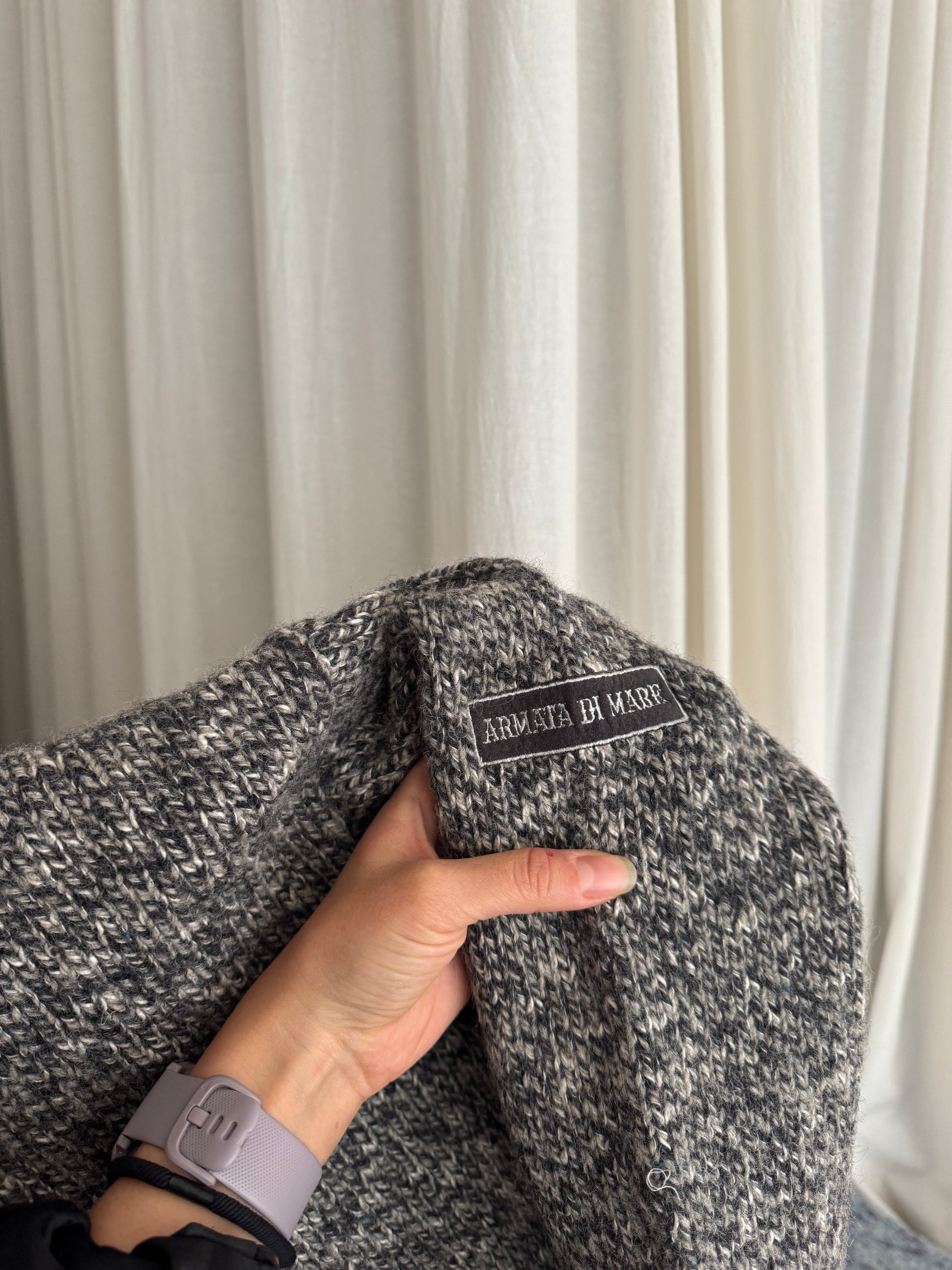Maglione vintage unisex a grigio in misto lana e cotone. Taglia 50 ma veste meno. Misure: spalle 53, ascelle 55, maniche 55, lunghezza 64.