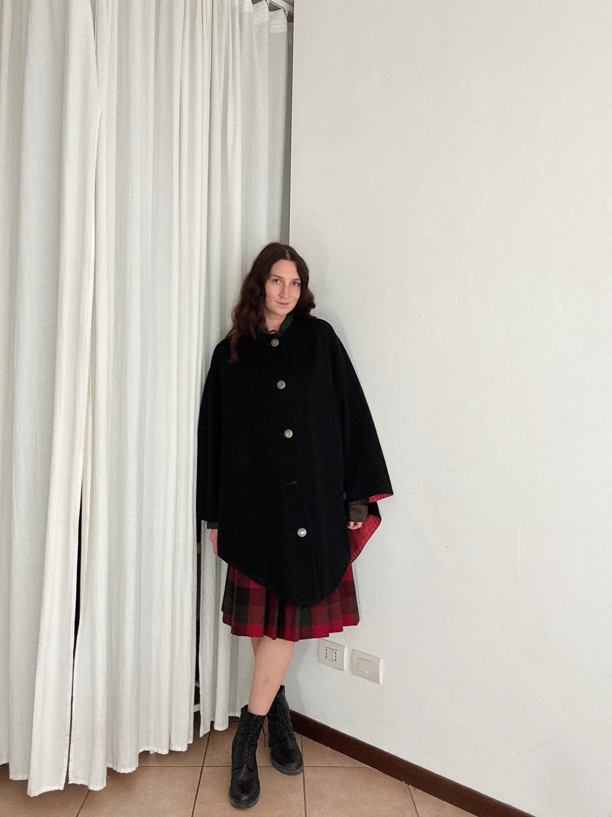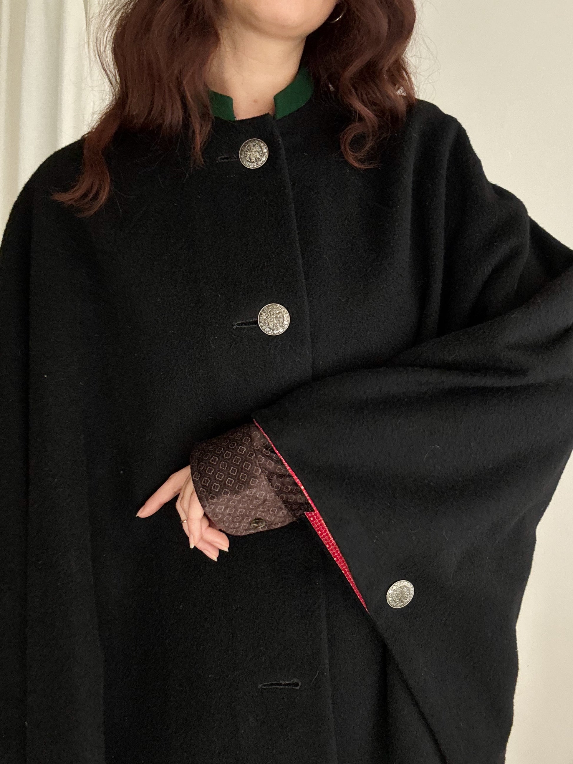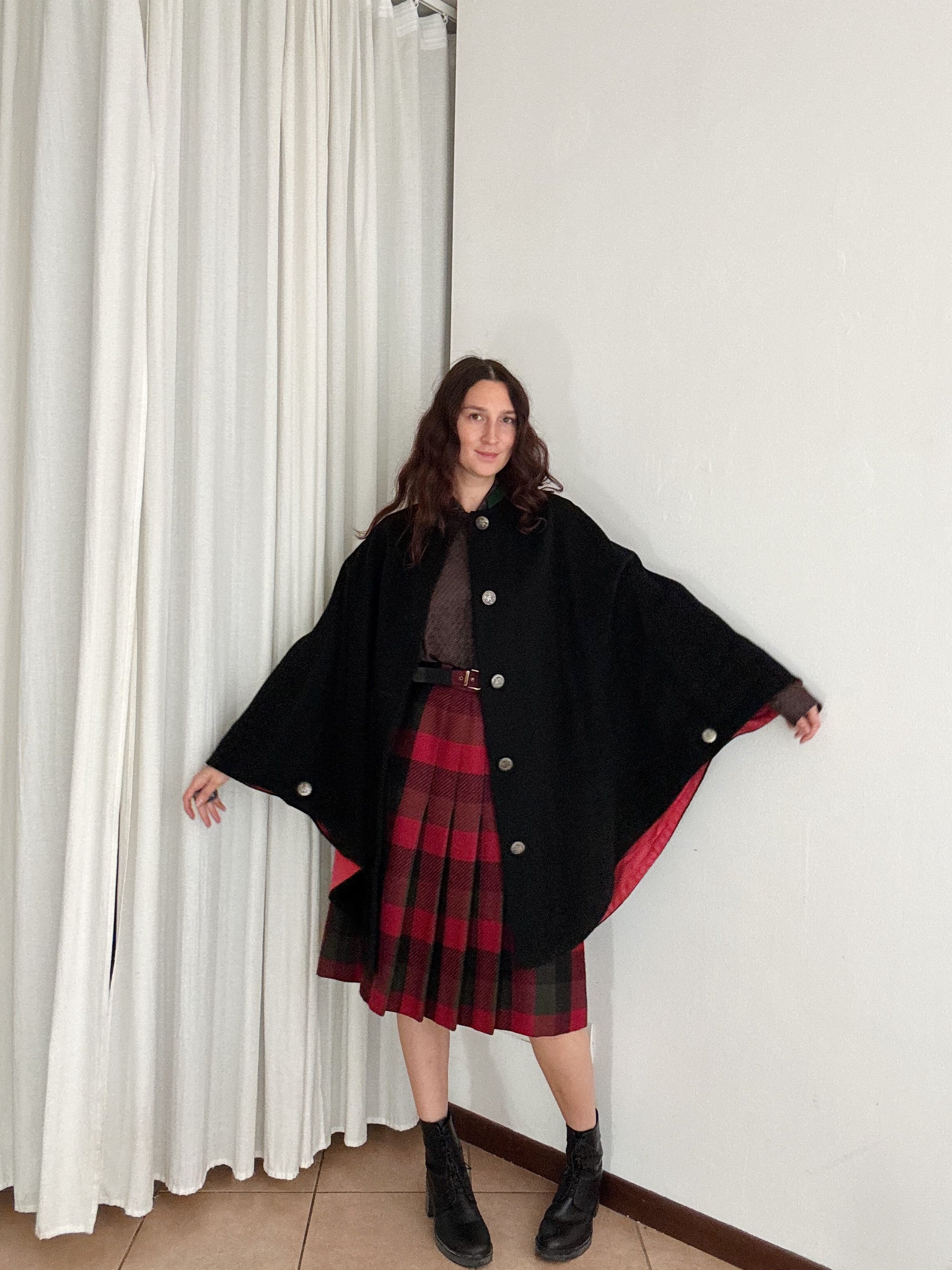 Mantella vintage tirolese in pura lana grigia con interno in cotone rosso. Taglia unica.