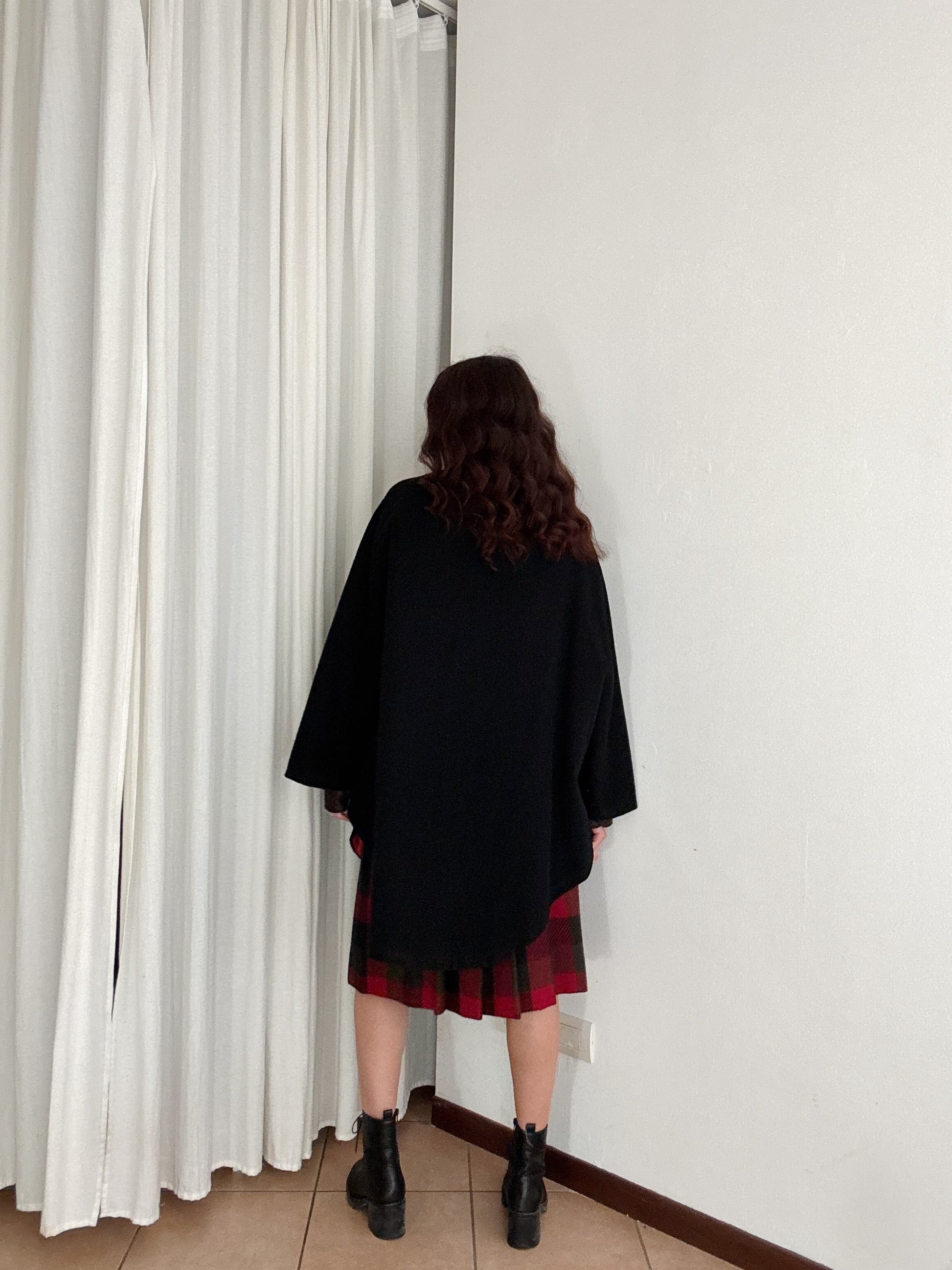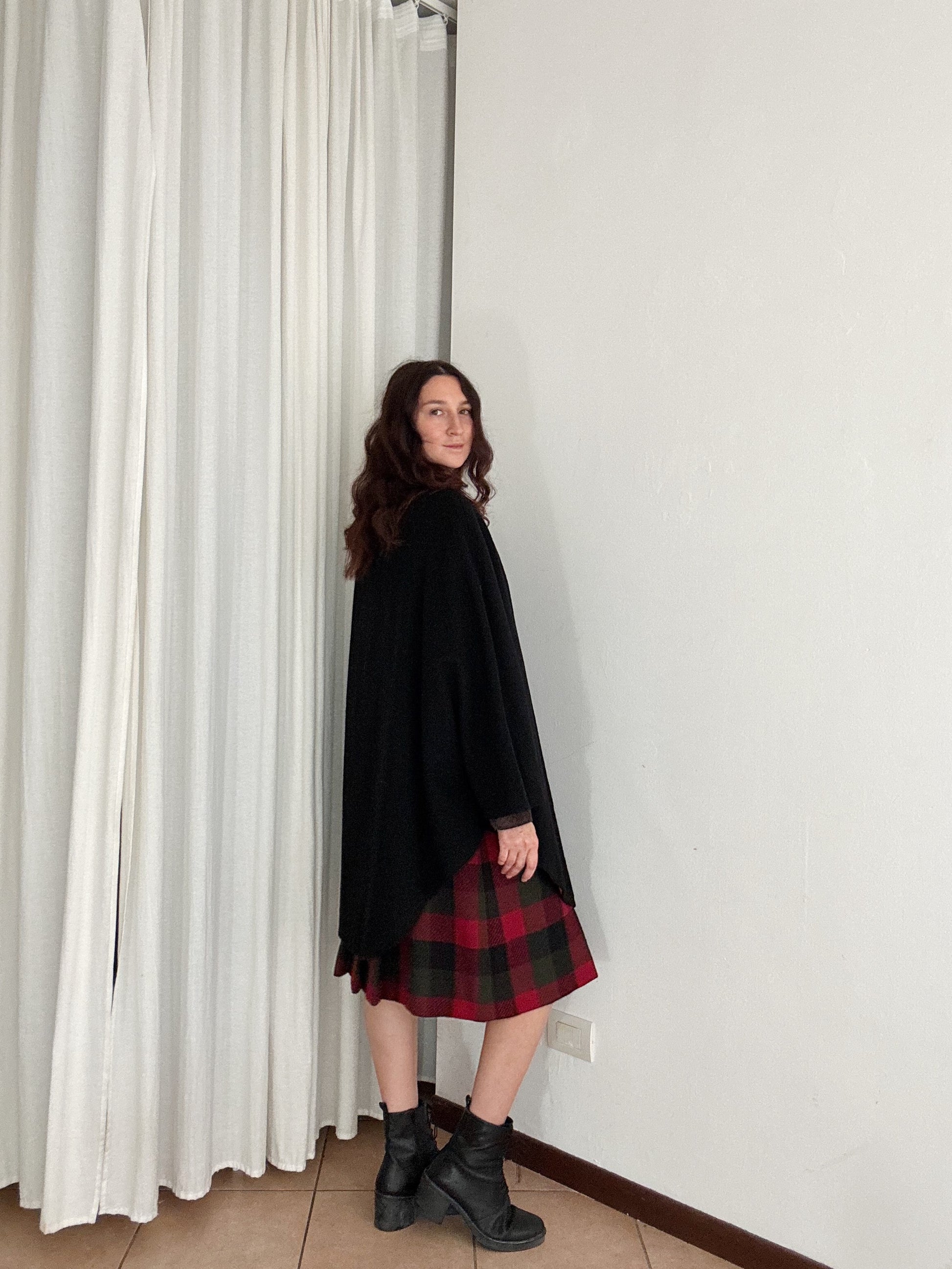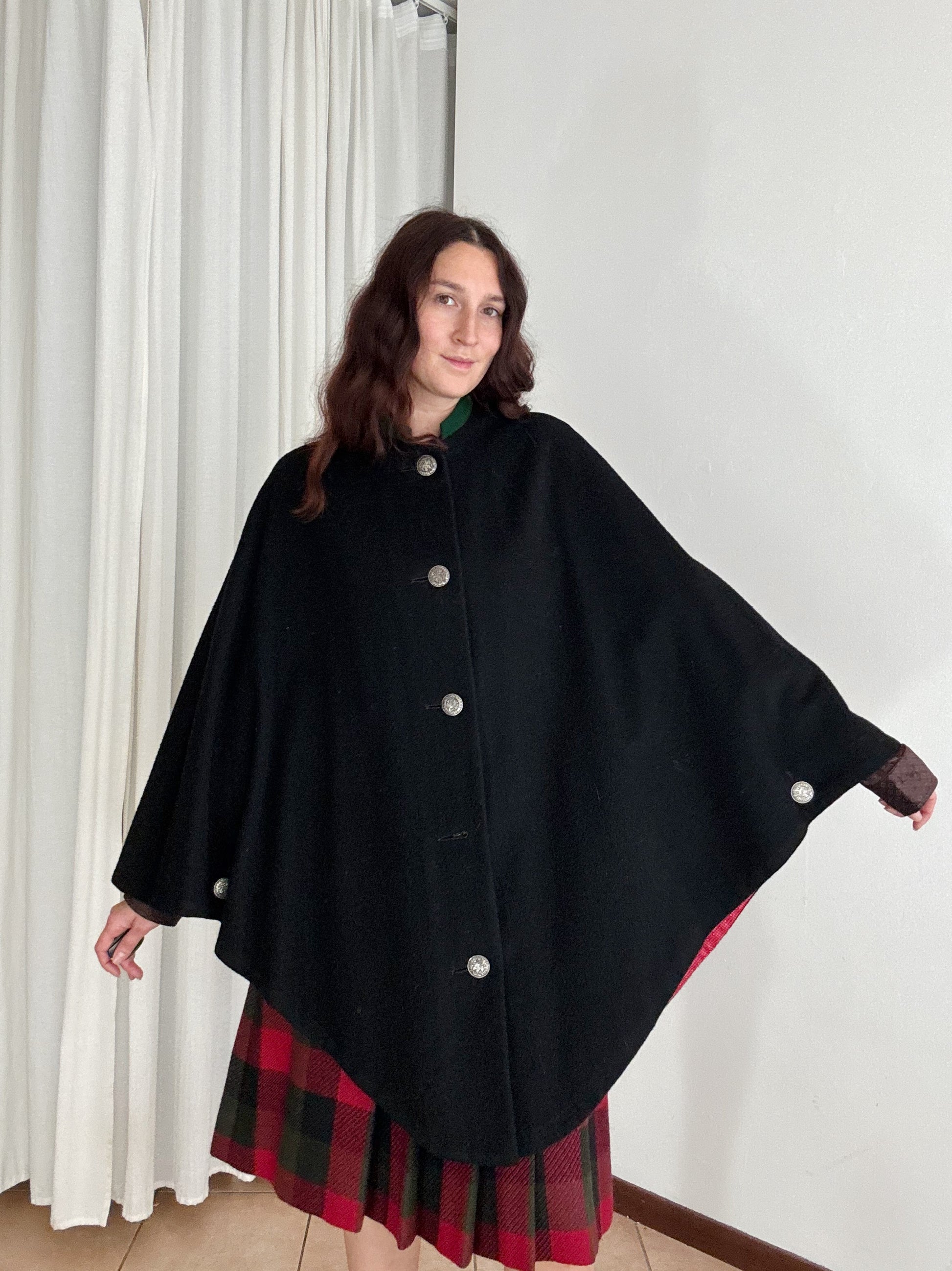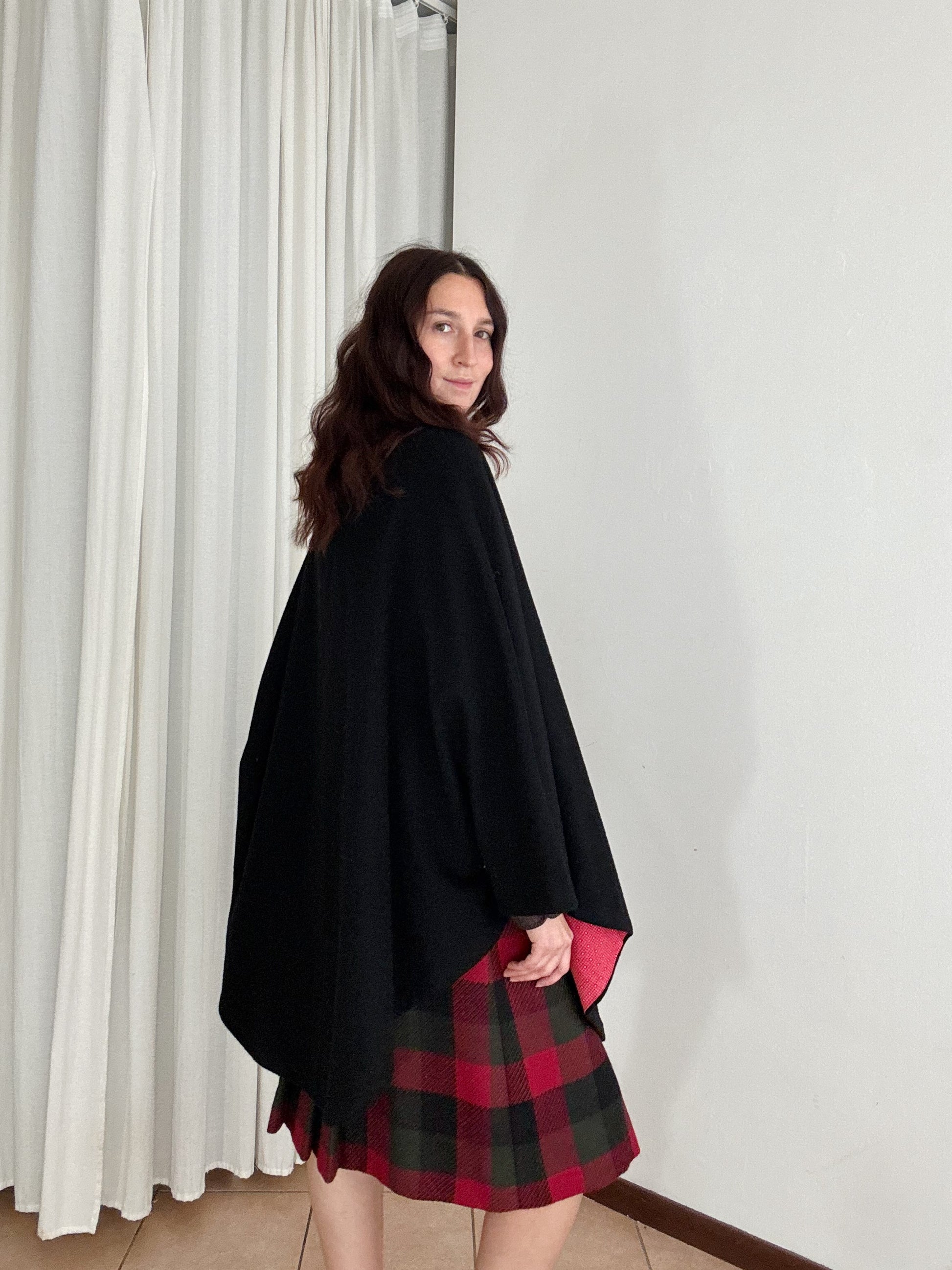 Mantella vintage tirolese in pura lana grigia con interno in cotone rosso. Taglia unica.