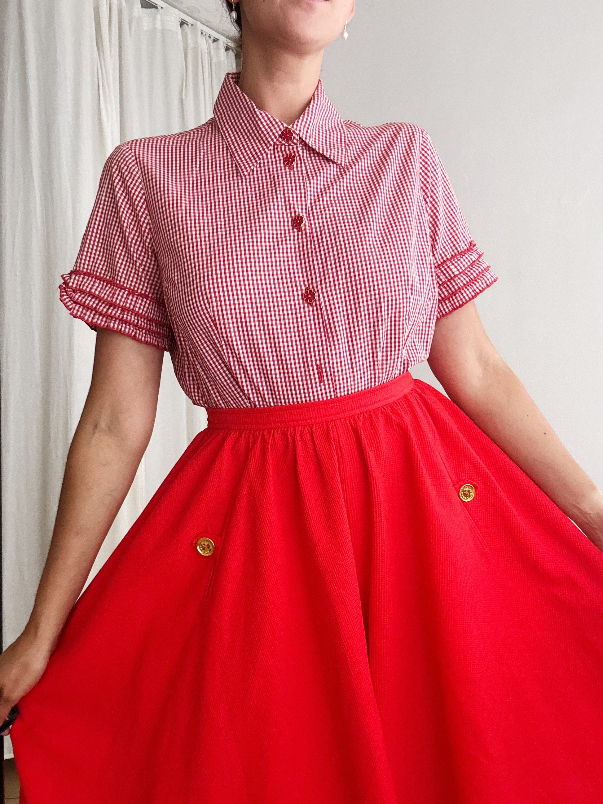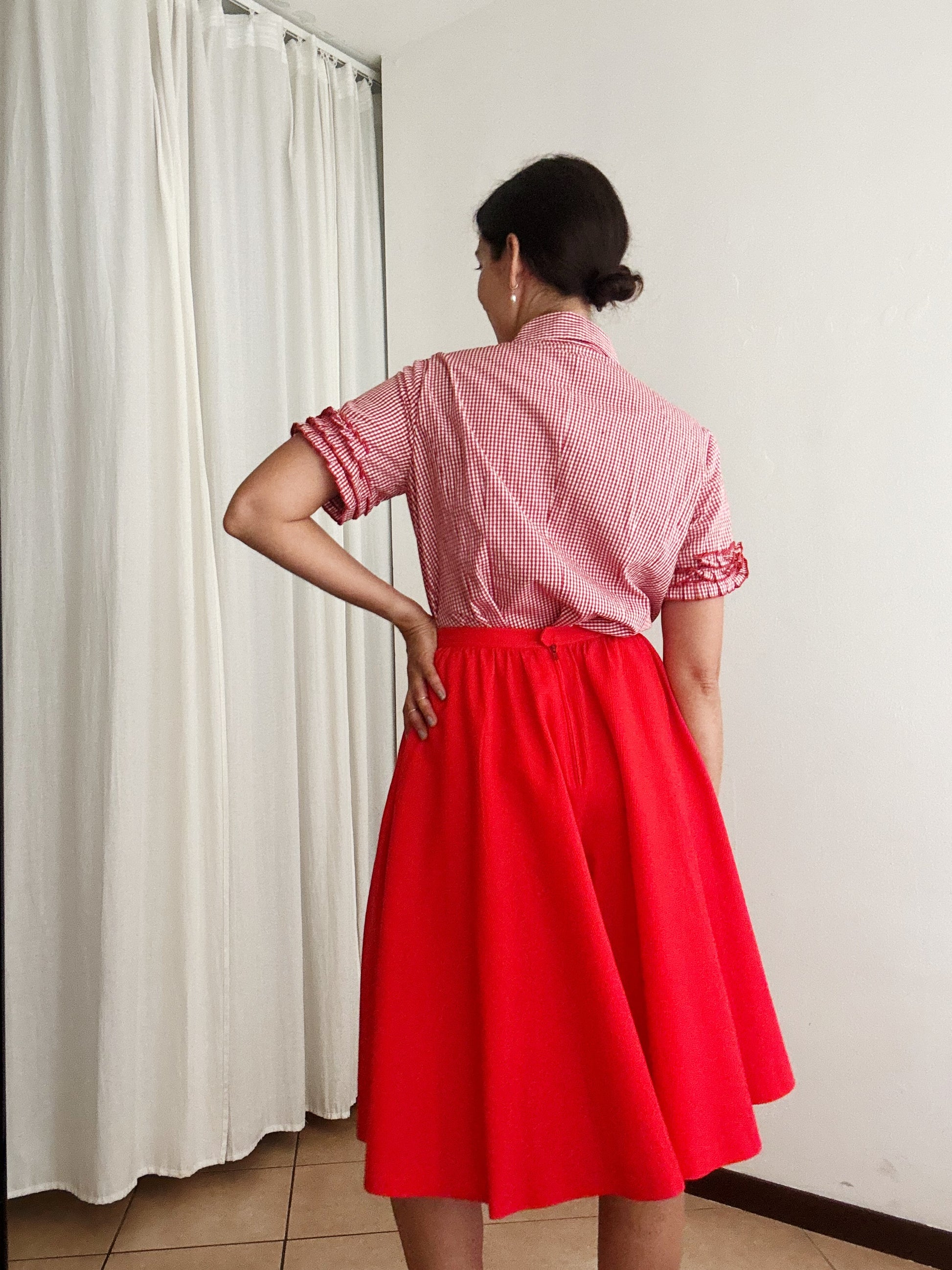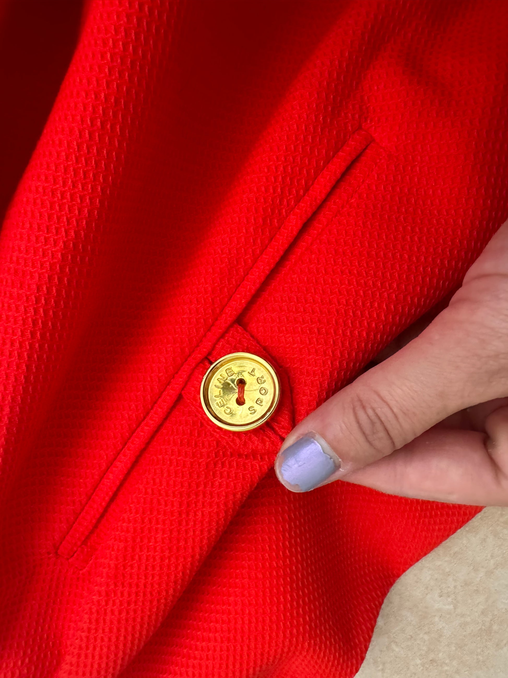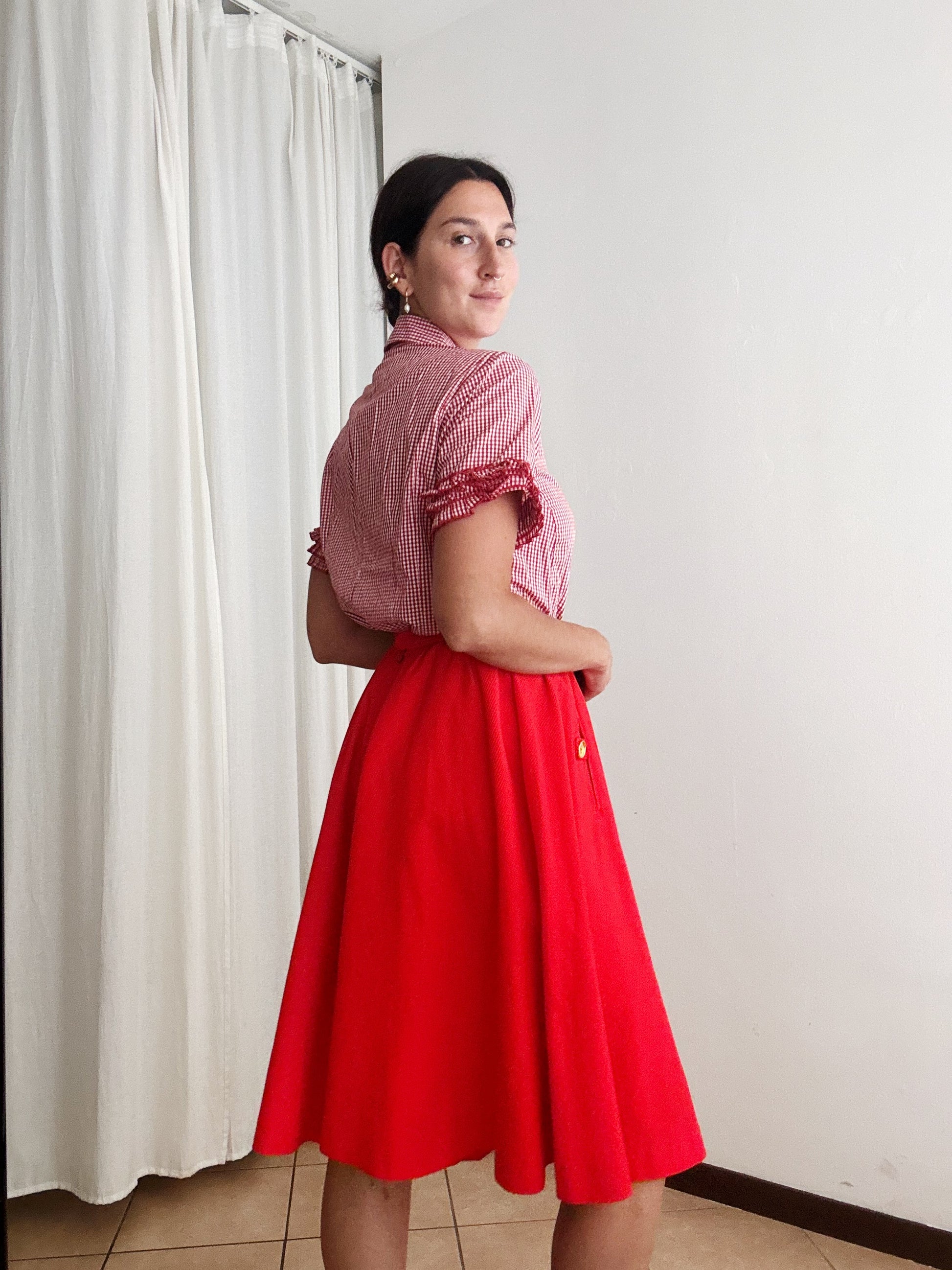 Meravigliosa gonna pantalone firmata Celine rossa ampissima, composizione non riportata ma direi cotone. Veste taglia 40/42. Misure: vita 35, lunghezza 66
