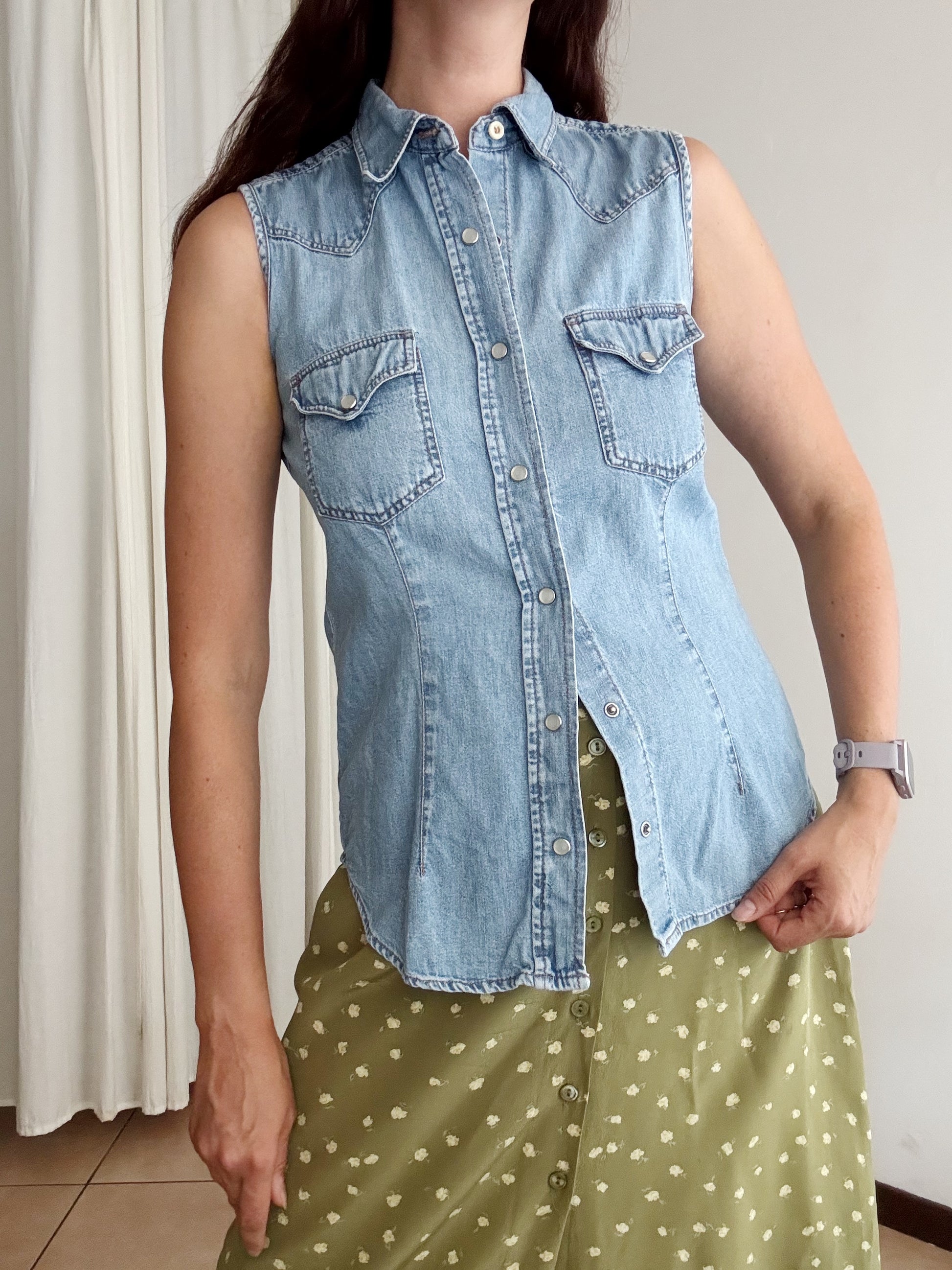 Camicia smanicata di jeans United colors of benetton, taglia 42. Misure: ascelle 46, lunghezza 64