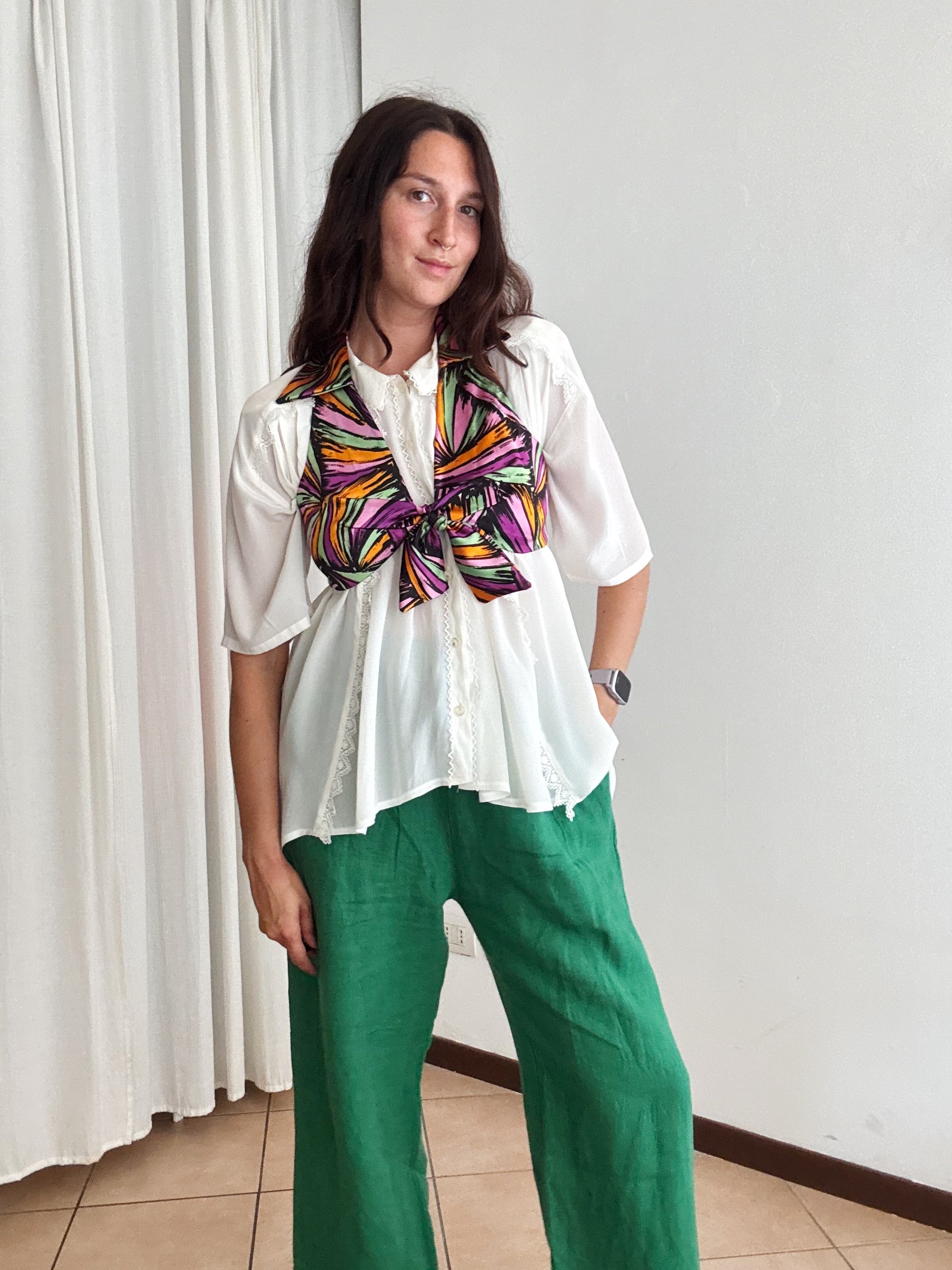 Top bianco in cotone veste taglia M/L. Misura ascelle 46, lunghezza 50