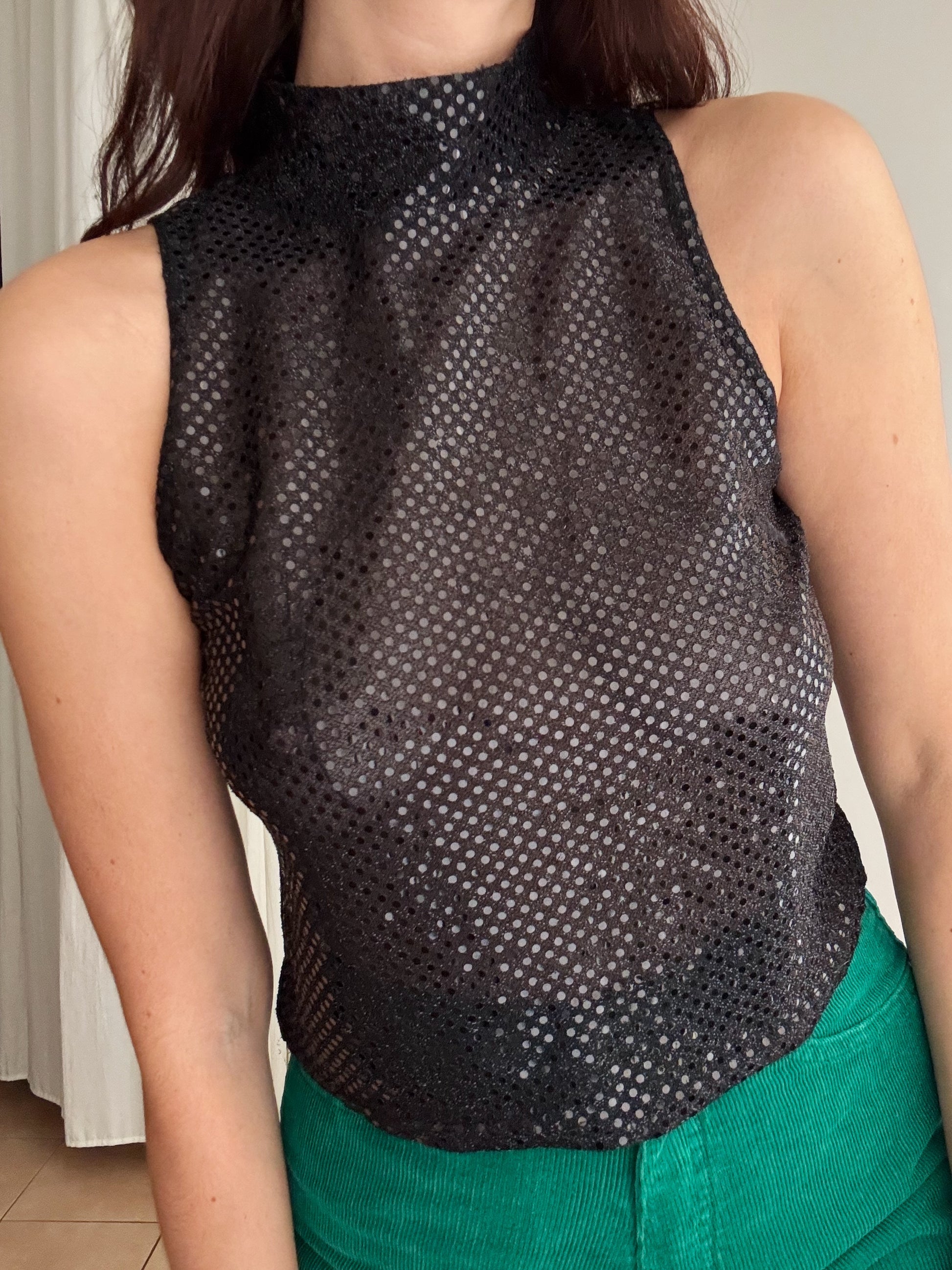 Top vintage nero semi trasparente con scollo sulla schiena. Taglia M