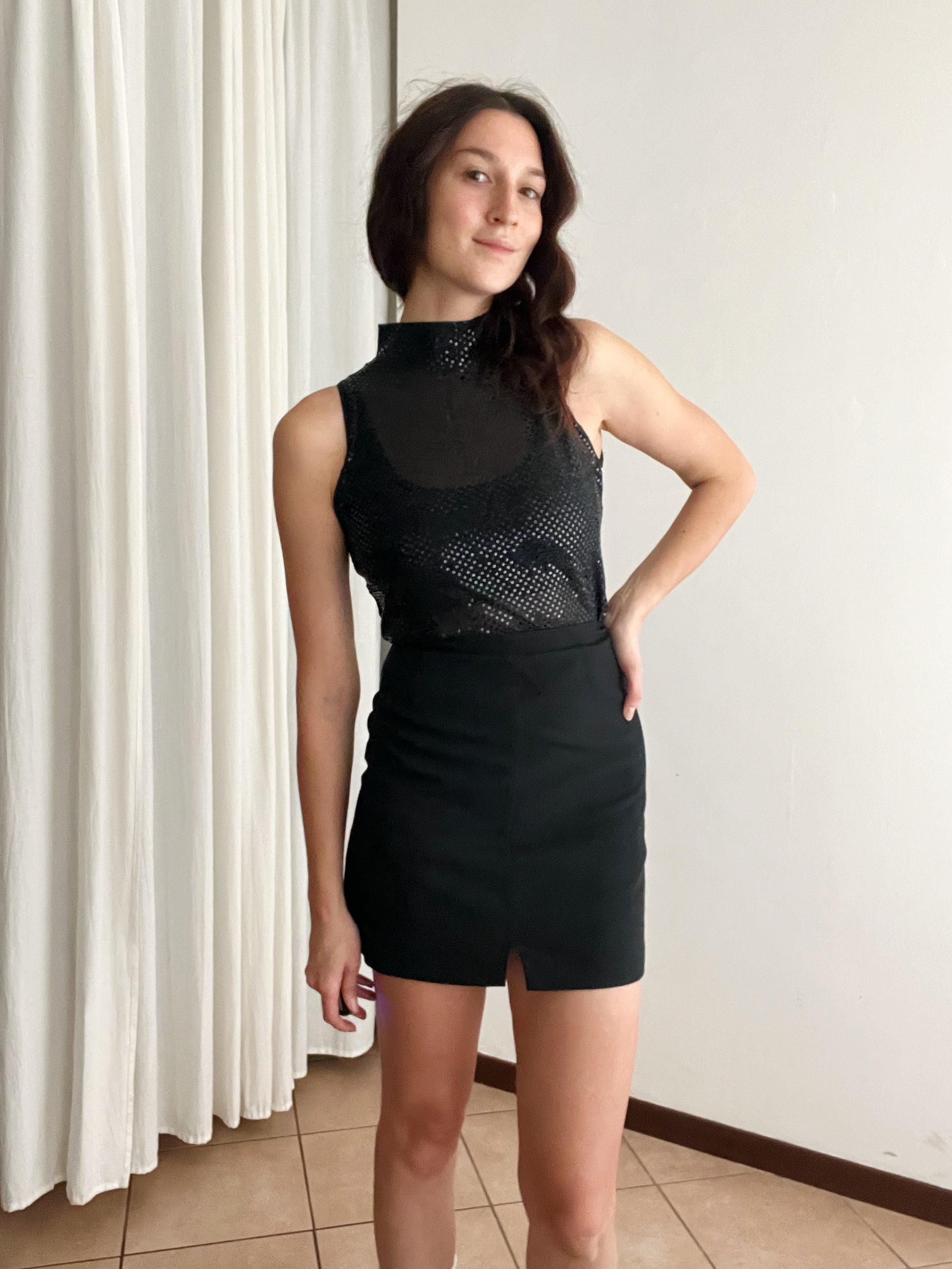 Top vintage nero semi trasparente con scollo sulla schiena. Taglia M
